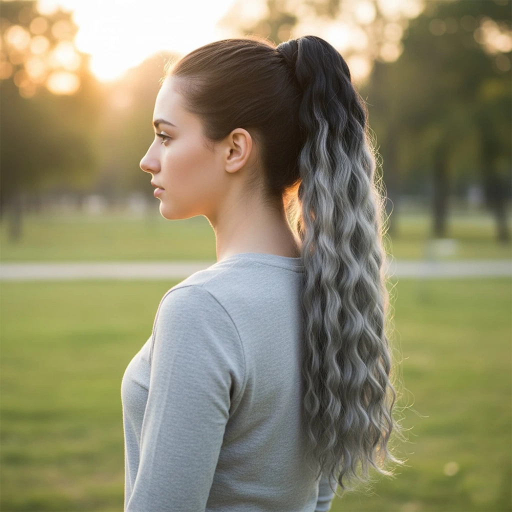Lastik Tokalı At Kuyruğu Su Dalgalı - Kumral / Platin Ombre