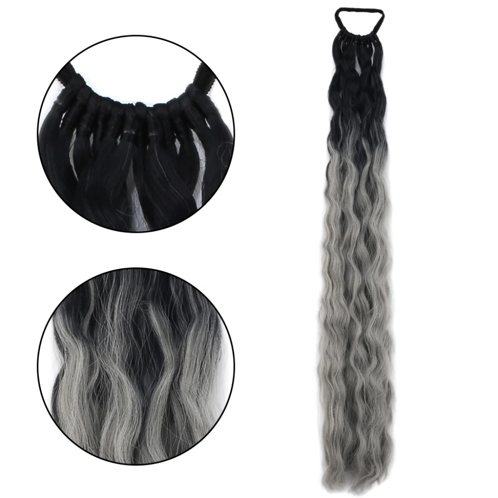 Lastik Tokalı At Kuyruğu Kabarık Afro Dalgalı - Siyah / Gri Ombre