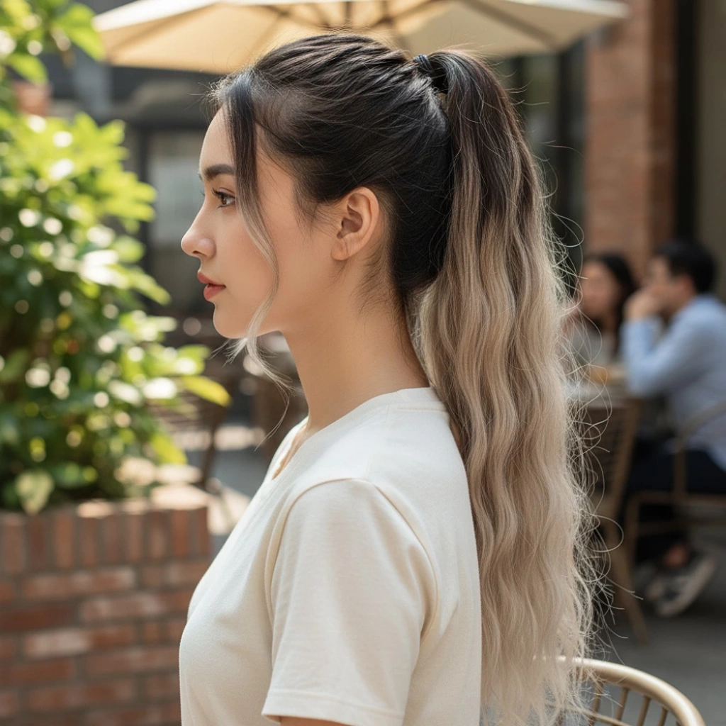 Lastik Tokalı At Kuyruğu Su Dalgalı - Kumral / Platin Ombre