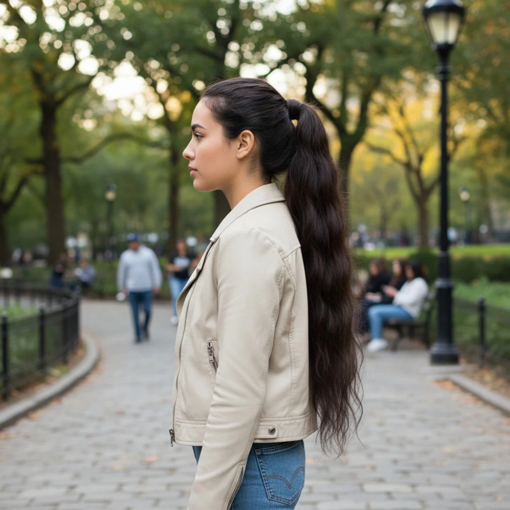 Lastik Tokalı At Kuyruğu Su Dalgalı - Koyu Kumral
