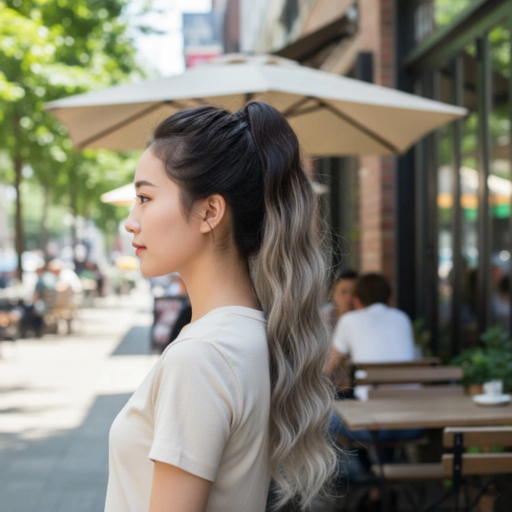 Lastik Tokalı At Kuyruğu Su Dalgalı - Küllü Kumral / Beyaz Platin Ombre