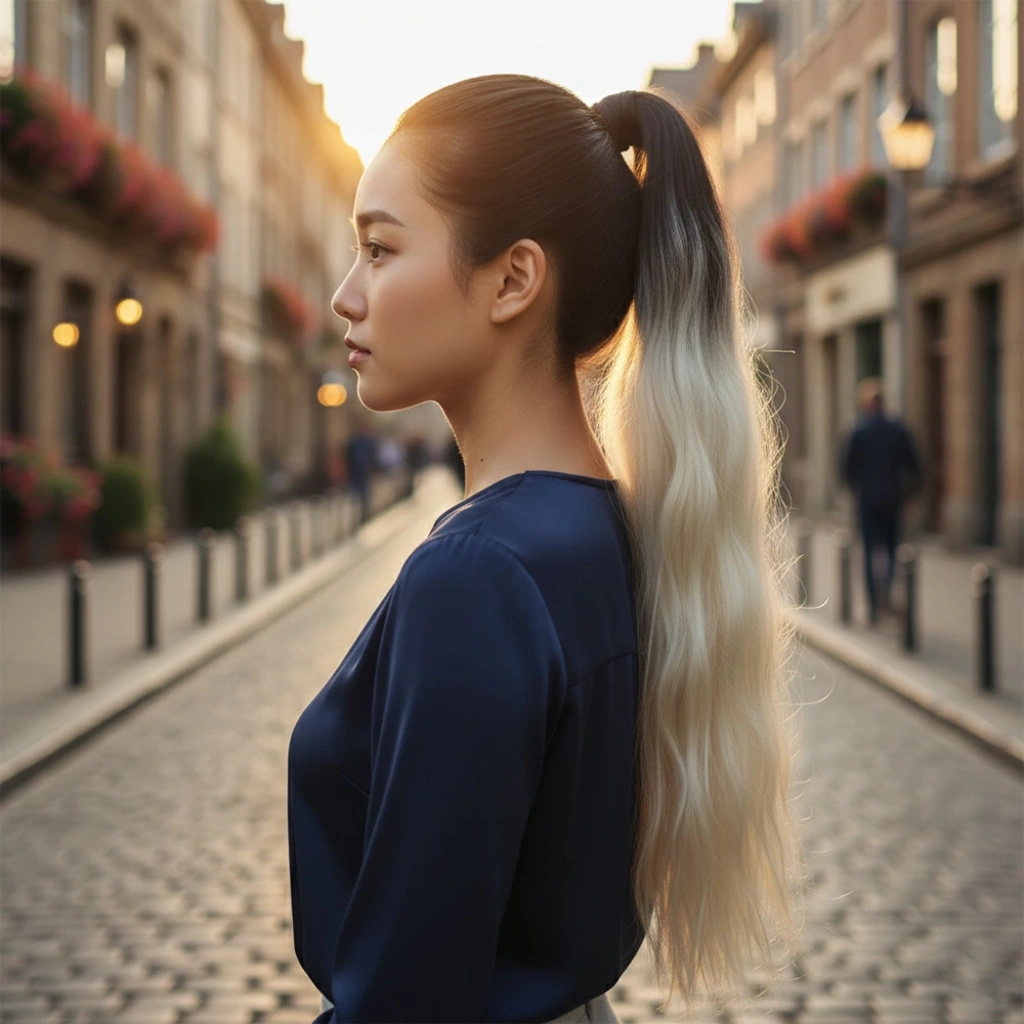 Lastik Tokalı At Kuyruğu Su Dalgalı - Kumral / Platin Ombre