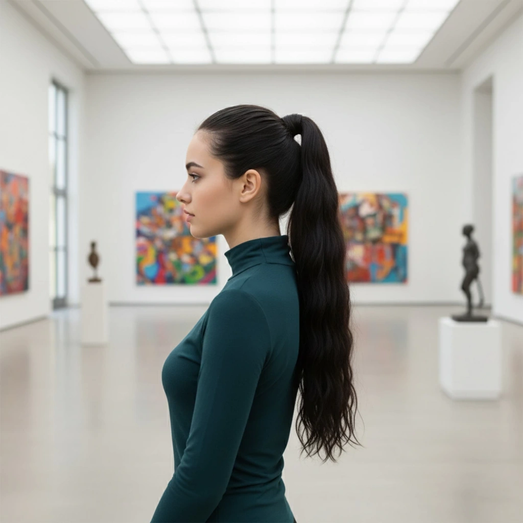 Lastik Tokalı At Kuyruğu Su Dalgalı - Siyah