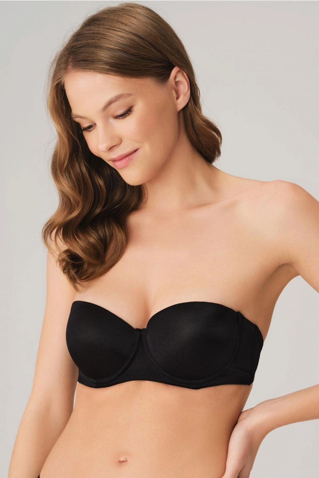 MARSiLYAN- Balenli Destekli Dolgulu Askısız Straplez Günlük Klasik T-shirt Sütyeni