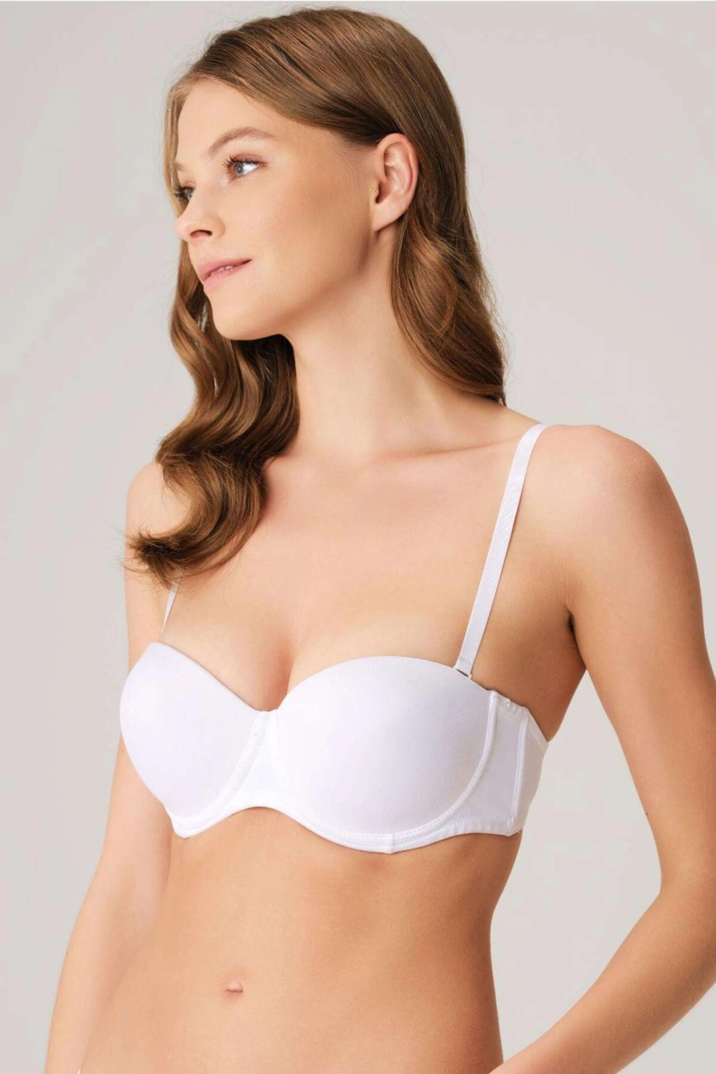 MARSiLYAN- Balenli Destekli Dolgulu Askısız Straplez Günlük Klasik T-shirt Sütyeni
