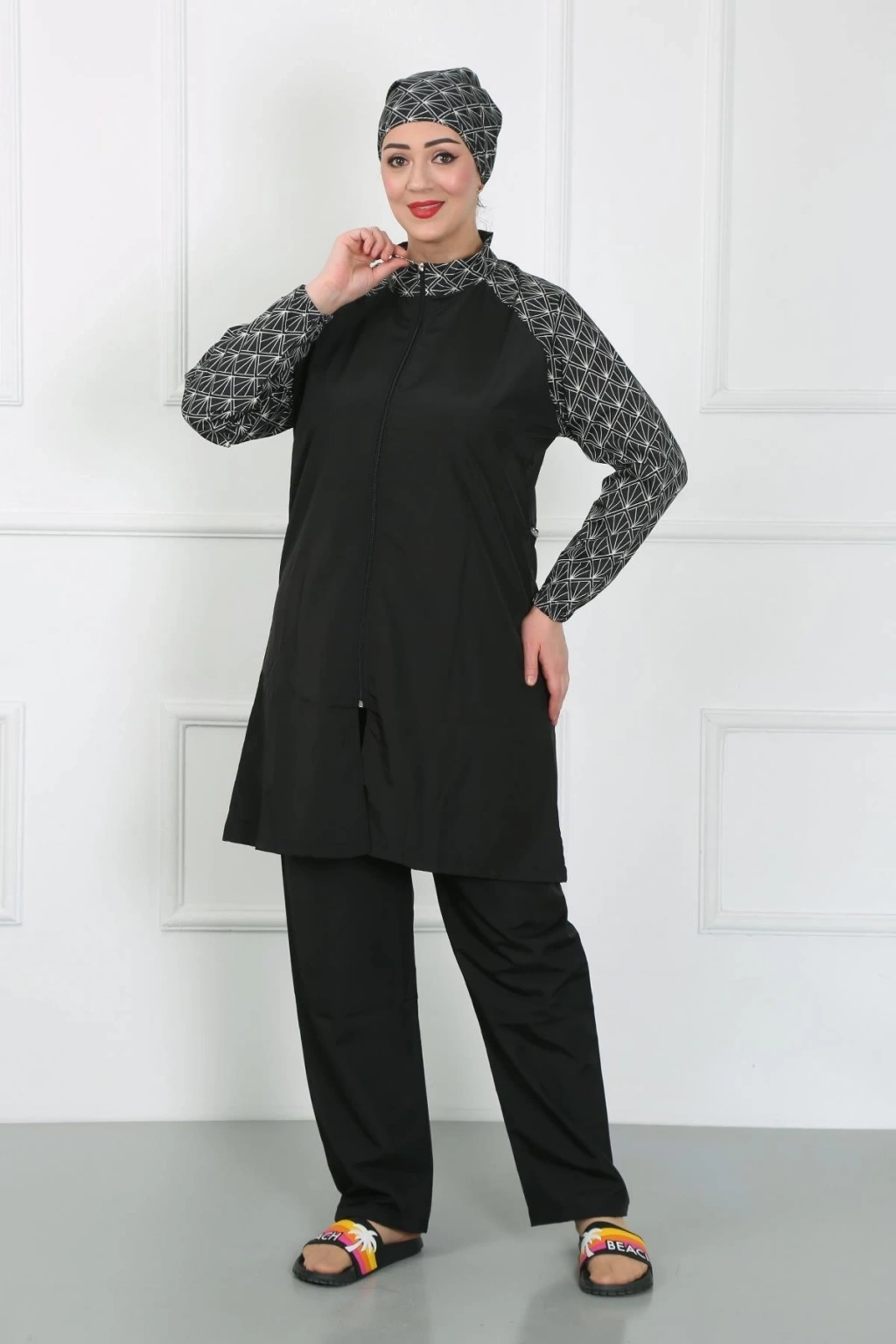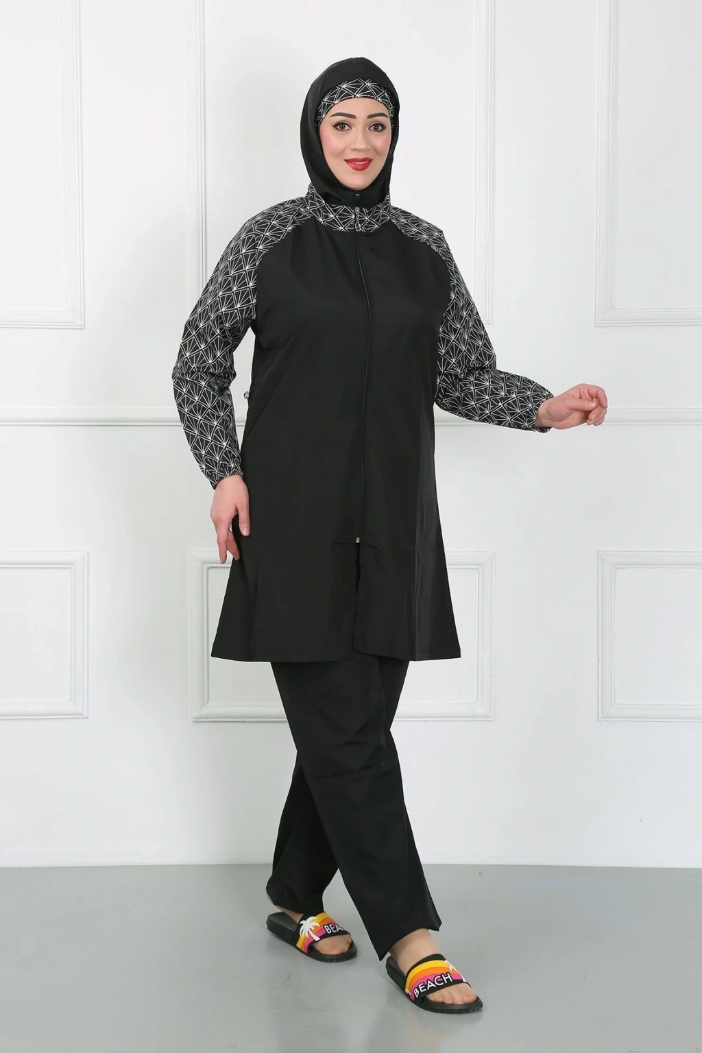 MARSiLYAN- Büyük Beden Desenli Tesettür Mayo Siyah