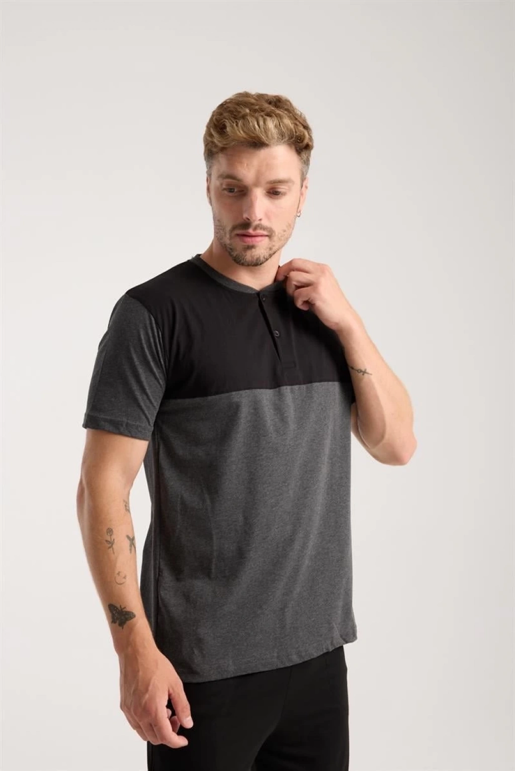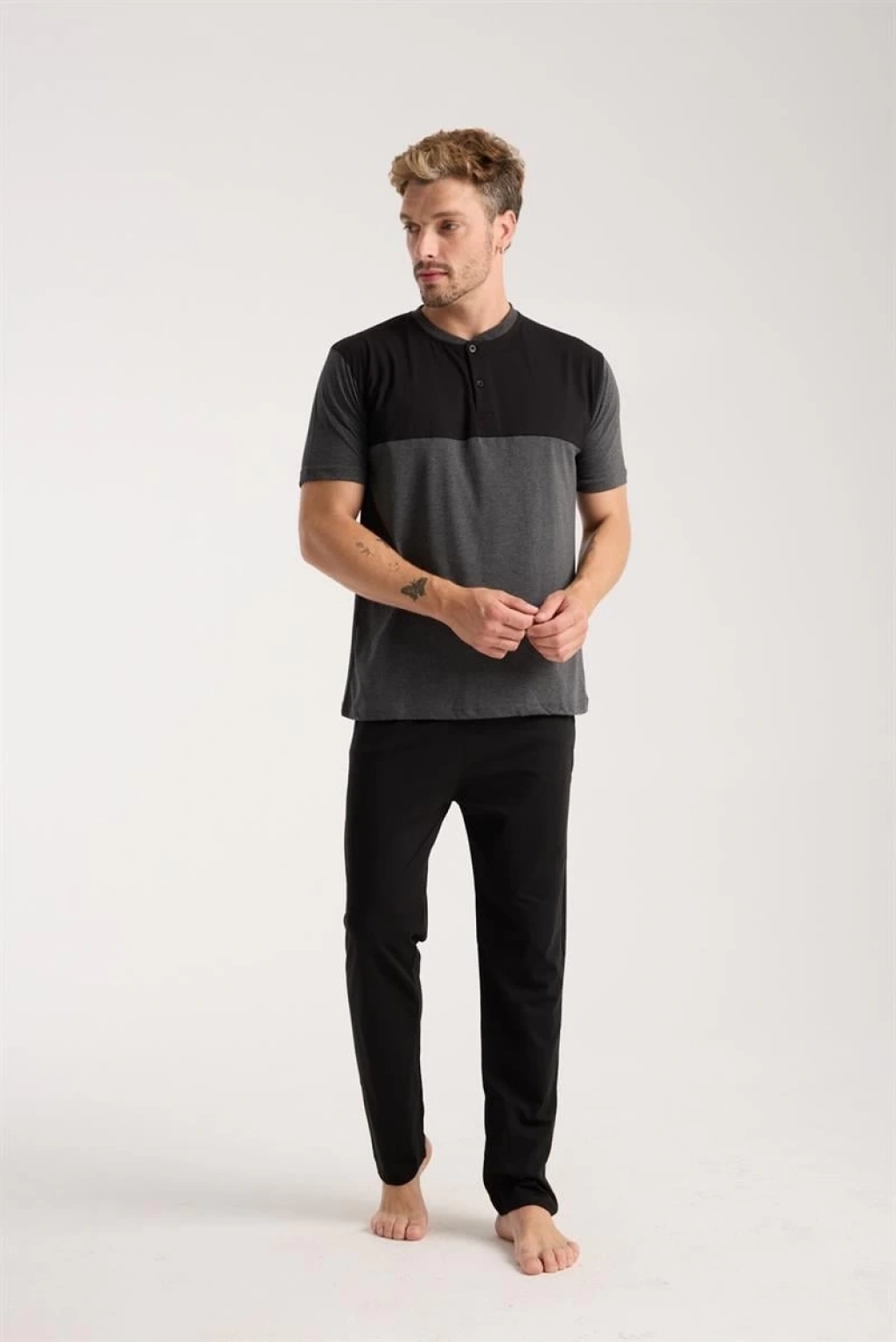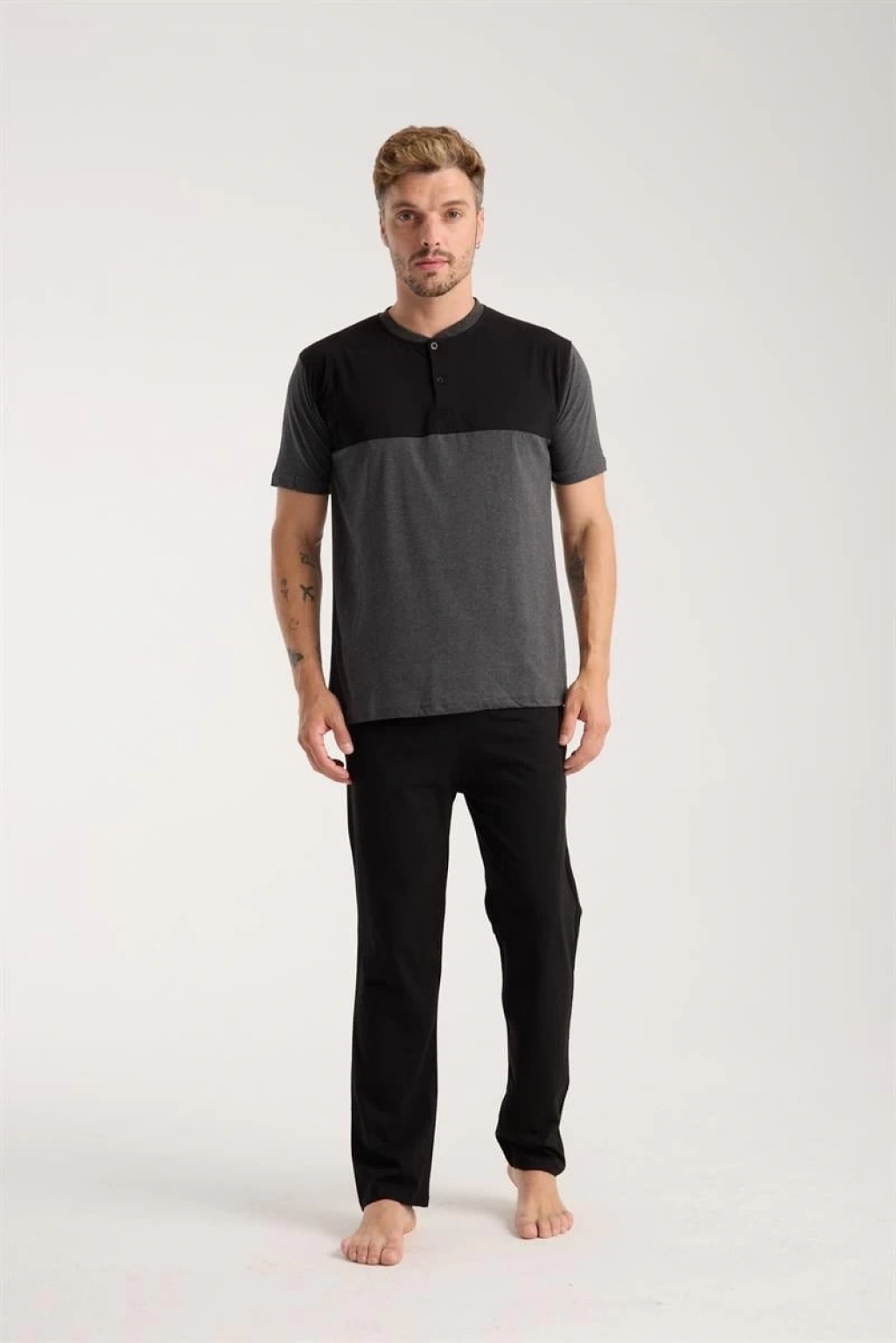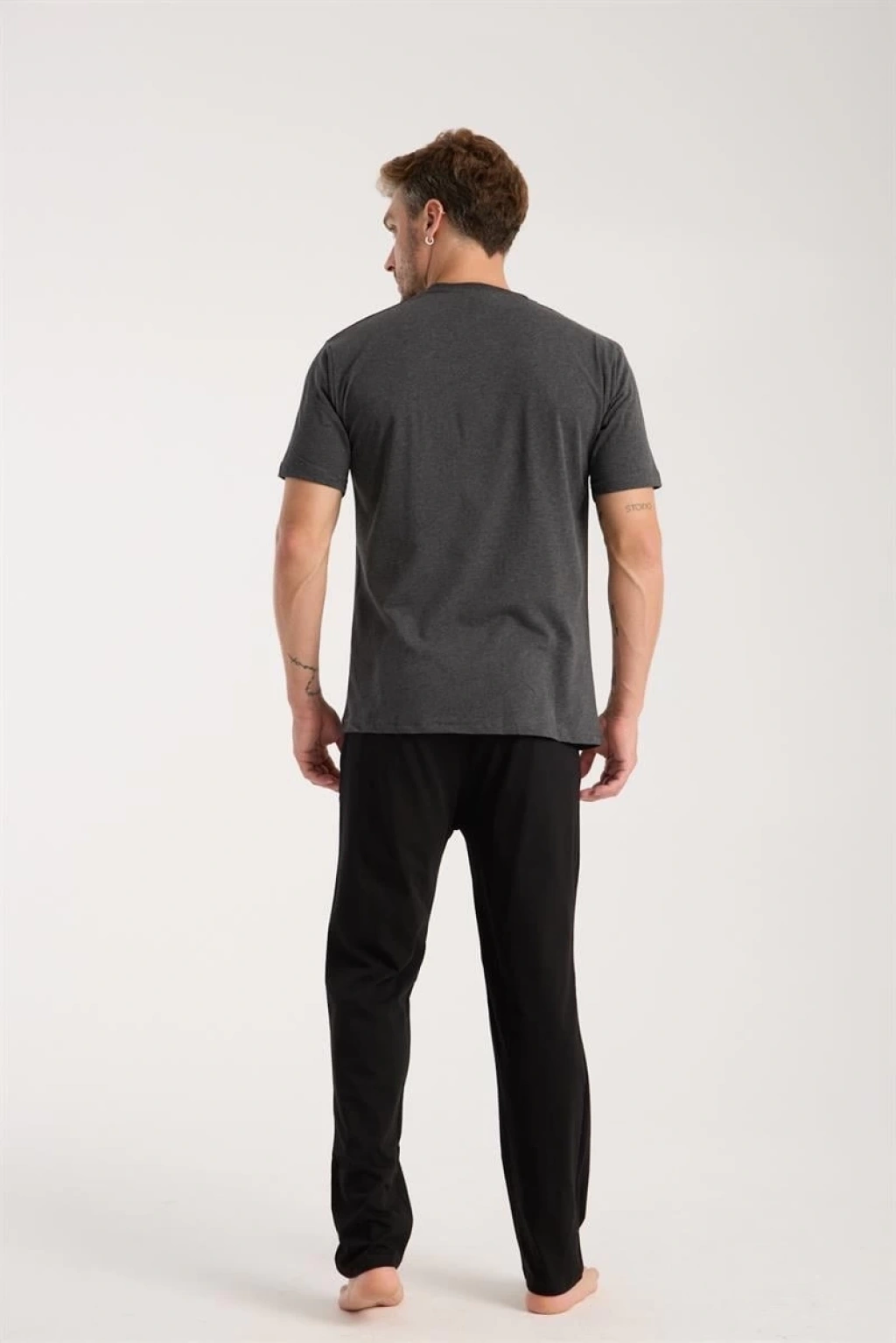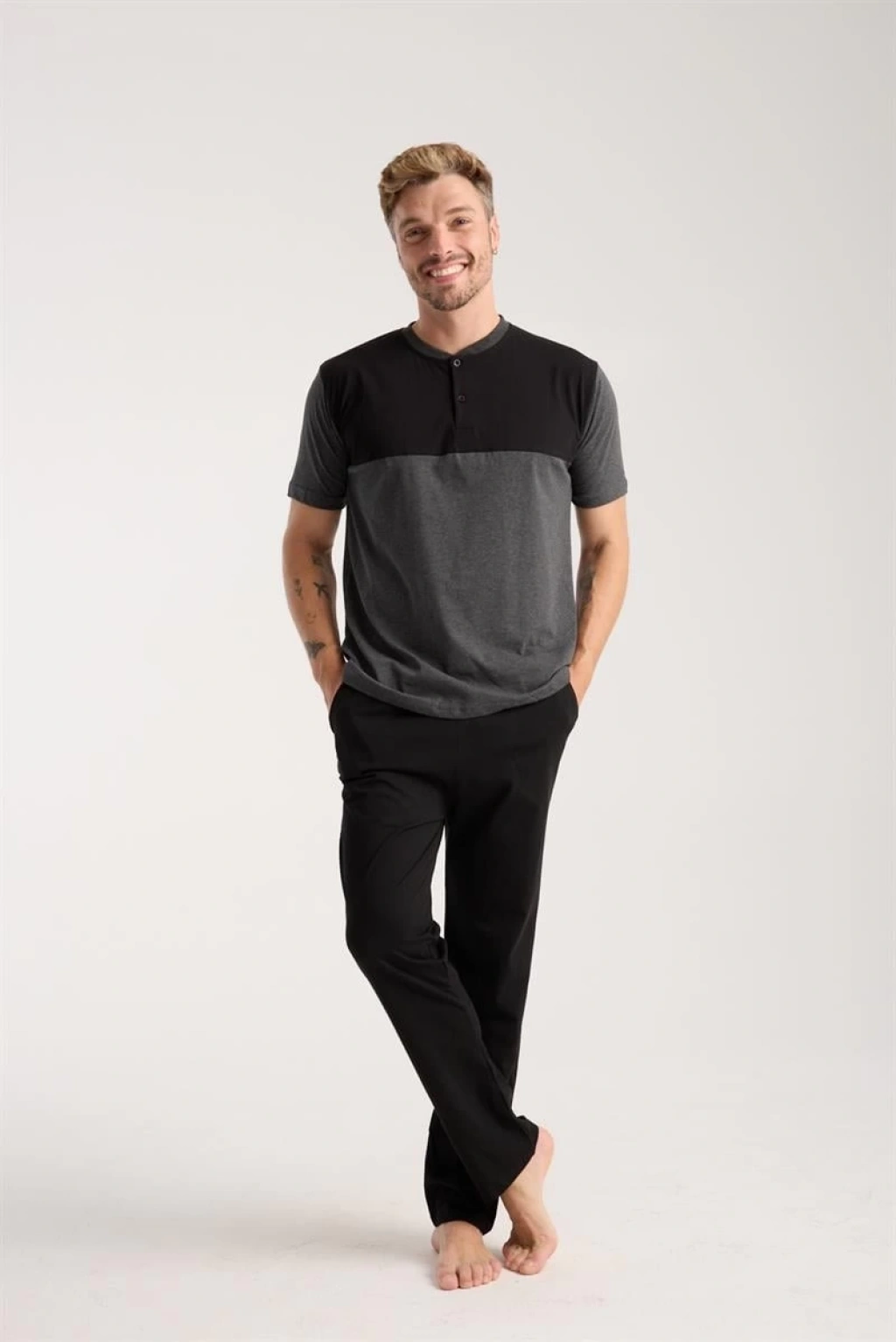 Çamaşır Kenti Erkek Antrasit Düğmeli Yaka Kısa Kol Pijama Takımı, konforu ve şıklığı bir arada sunar.