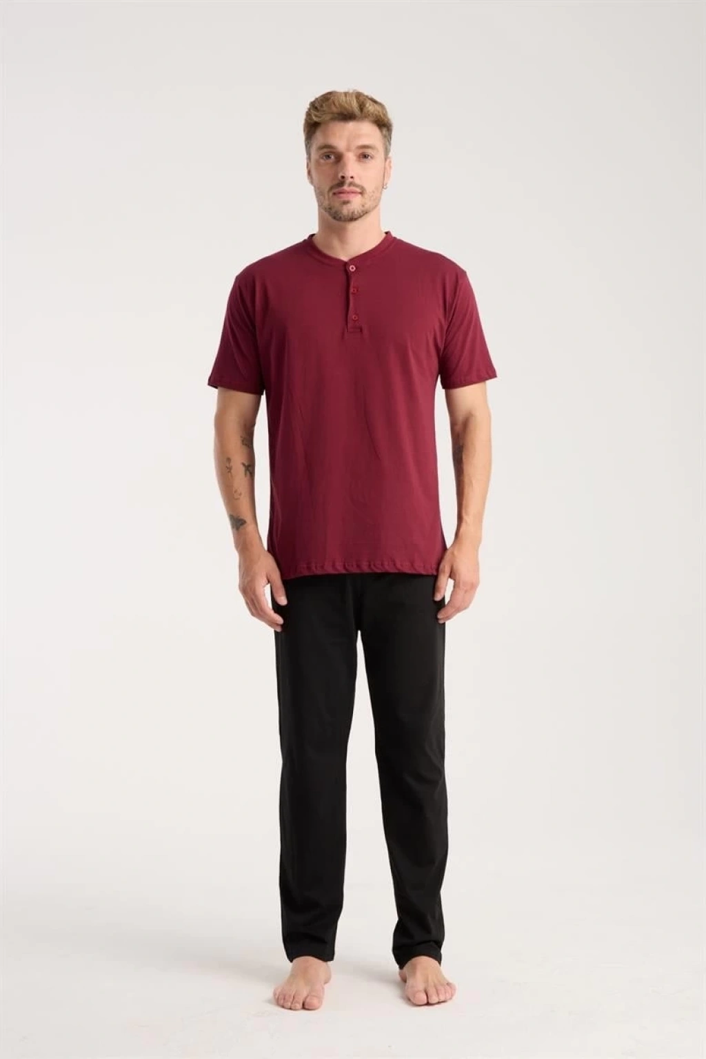 Çamaşır Kenti'nin Erkek Bordo Düğmeli Yaka Kısa Kol Pijama Takımı ile şıklığından ödün vermeden rahatlığı yakalayın!