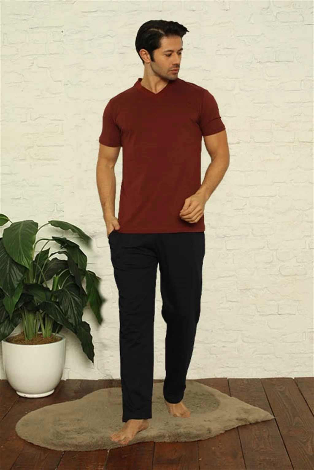 Erkek Bordo V Yaka 3'lü Pijama Takımı'nı hemen satın alarak konforlu ve şık gecelerin keyfini çıkarabilirsiniz.