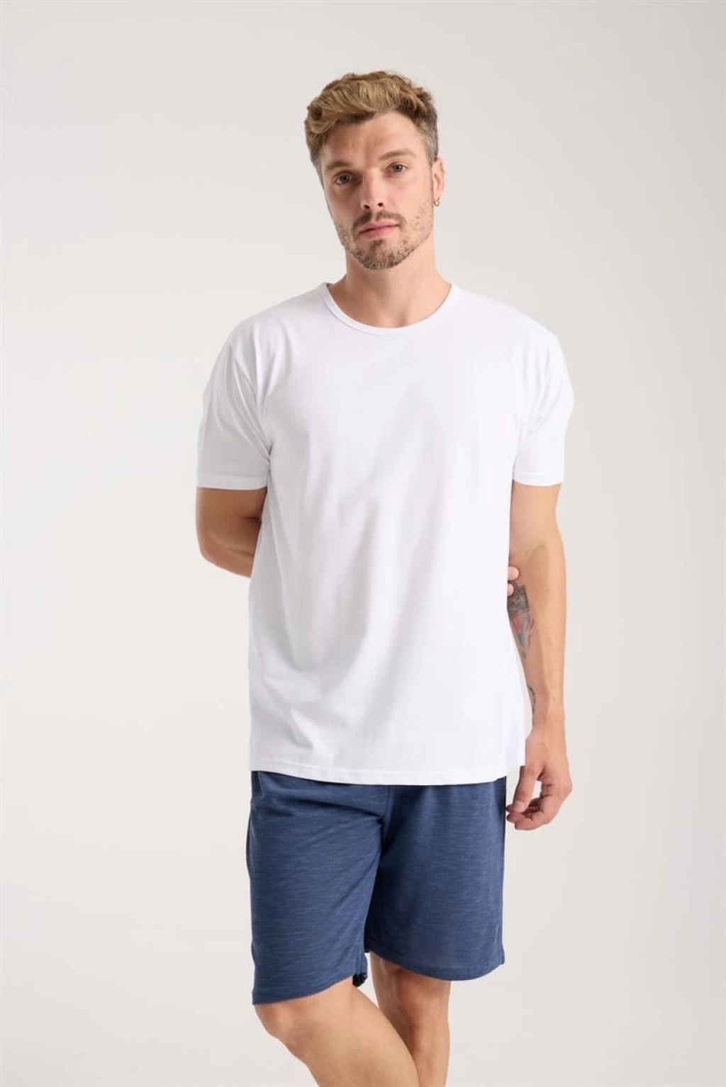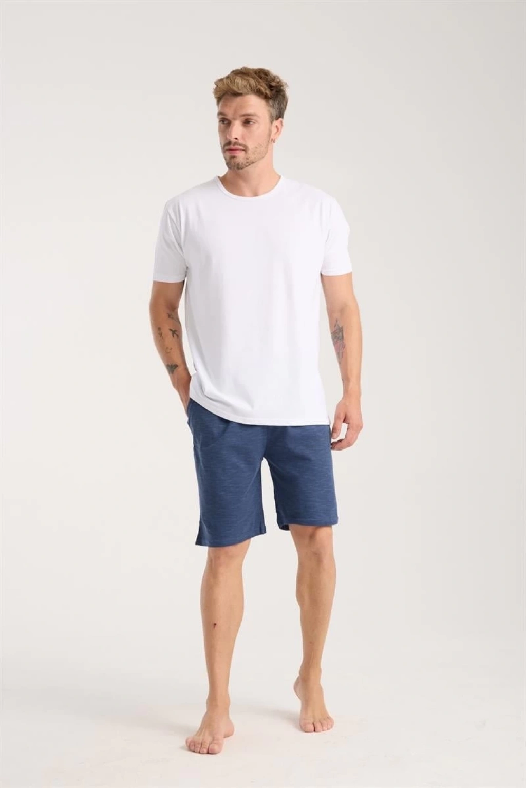 - Erkek Cepli Lakost Pamuk Penye Şort Lacivert