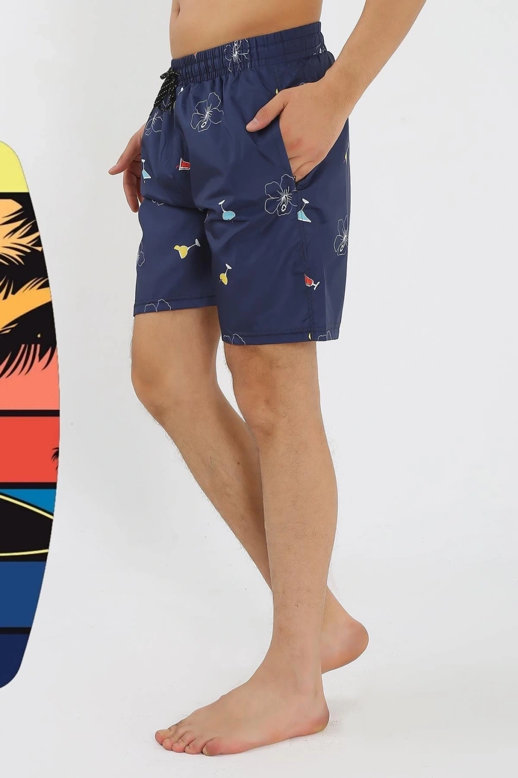 MARSiLYAN- Erkek Desenli Fermuar Cepli Deniz Şortu Lacivert