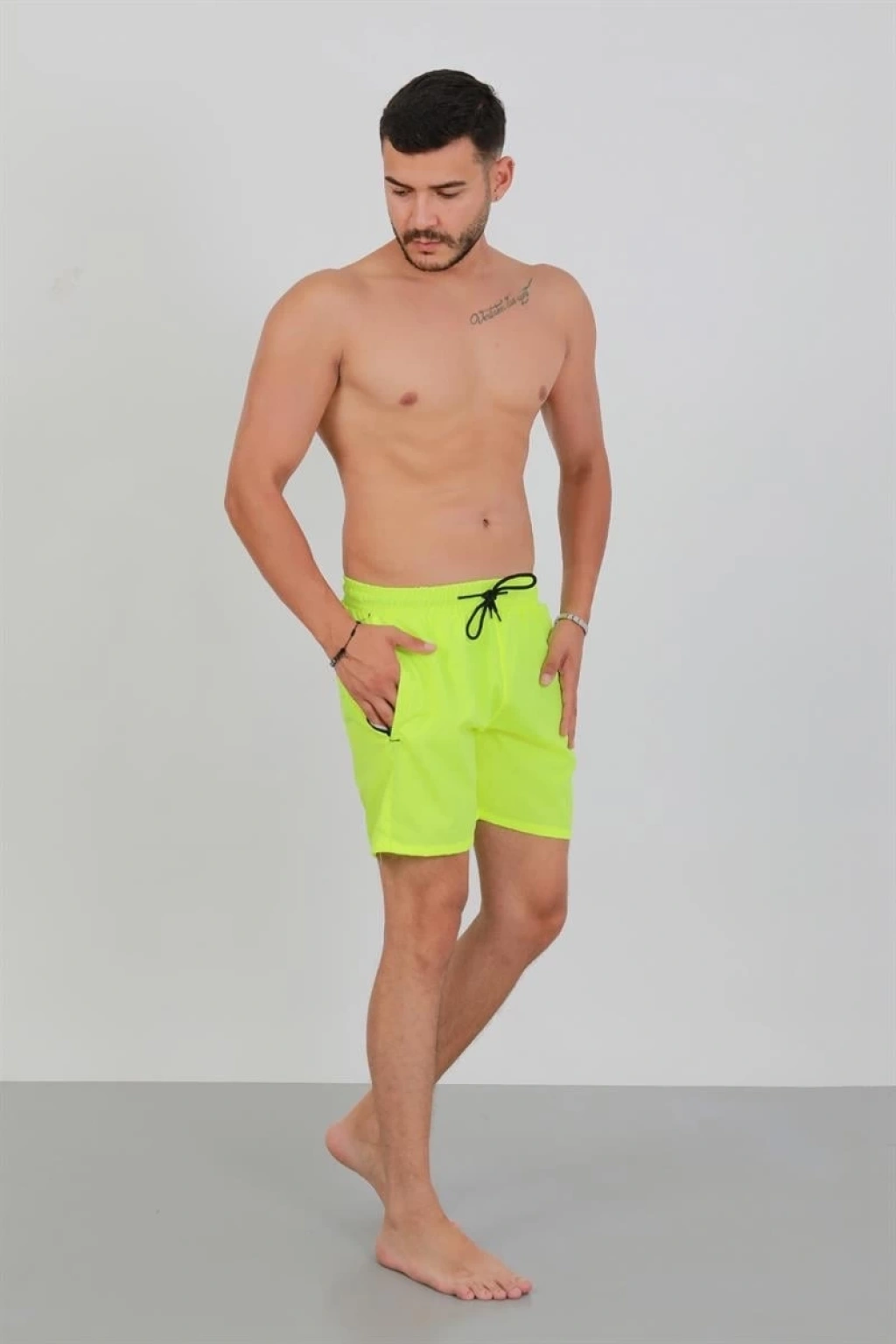 Çamaşır Kenti marka erkek fermuarlı cepli deniz şortu ile plajın keyfini çıkarın. Neon yeşil rengi ile tarzınızı konuşturacak bu şort, hem şık hem de rahat bir kullanım sunar.