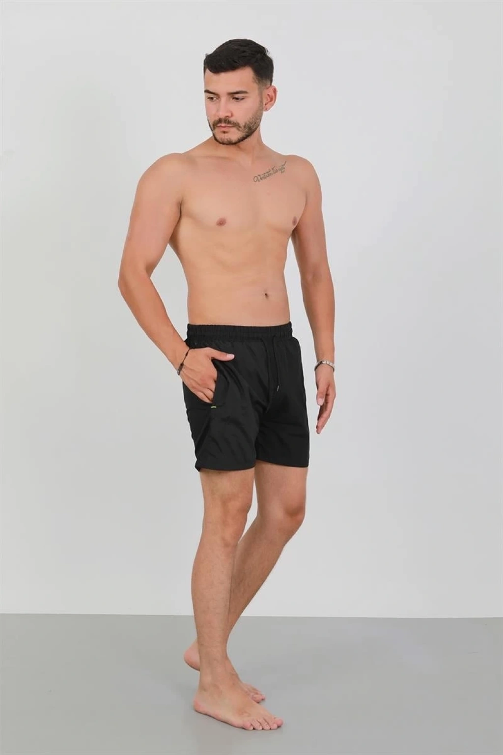 Bu şık siyah deniz şortu ile plajın ve havuzun tadını çıkarırken şıklığınızdan ödün vermeyeceksiniz. Çamaşır Kenti kalitesi ile yaz mevsimine stil katın!