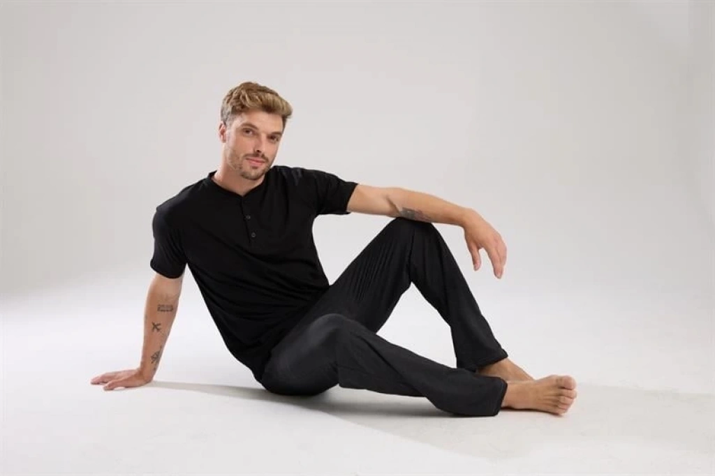 Çamaşır Kenti'nin şık ve konforlu Erkek Füme Düğmeli Yaka Kısa Kol Pijama Takımı, rahat bir gece uykusu için ideal bir seçenektir.