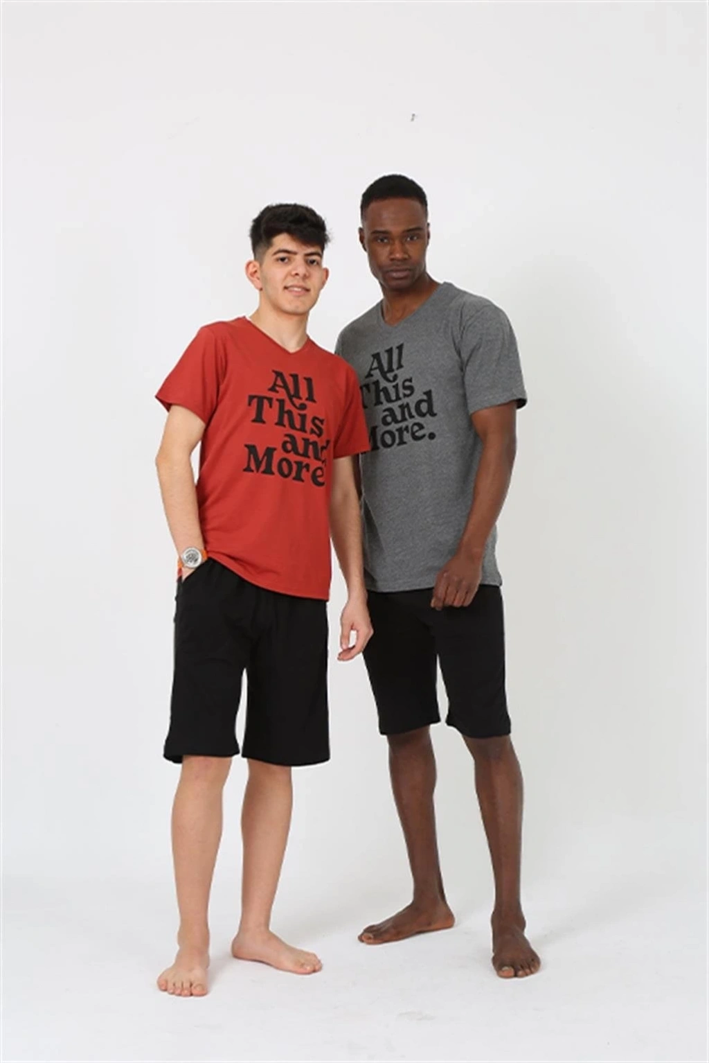 Erkek Genç Garson Boy Kısa Kol Antrasit Penye Şortlu Pijama Takımı ile tarzınızı yansıtın, konforun tadını çıkarın.