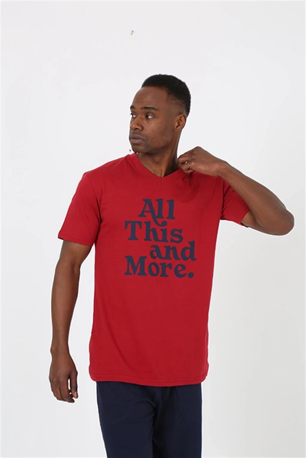 Çamaşır Kenti'nin erkekler için özel olarak tasarladığı kısa kol bordo penye şortlu pijama takımı, rahatlığı ve şıklığı bir arada sunuyor.