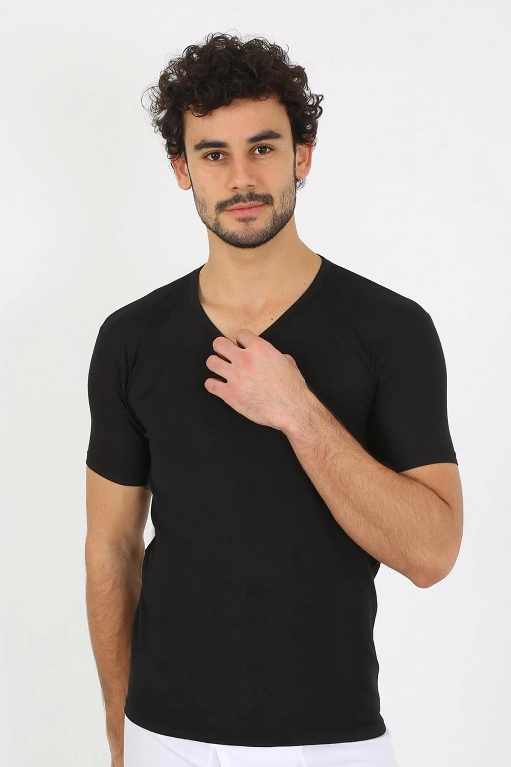 Günlük kullanıma uygun olan Likralı V Yaka Siyah T-Shirt, her mevsim rahatlıkla tercih edebileceğiniz şık bir parçadır. Gardırobunuzun vazgeçilmezleri arasında yer alacak bu t-shirt ile hem spor hem de daha şık kombinler oluşturabilirsiniz.