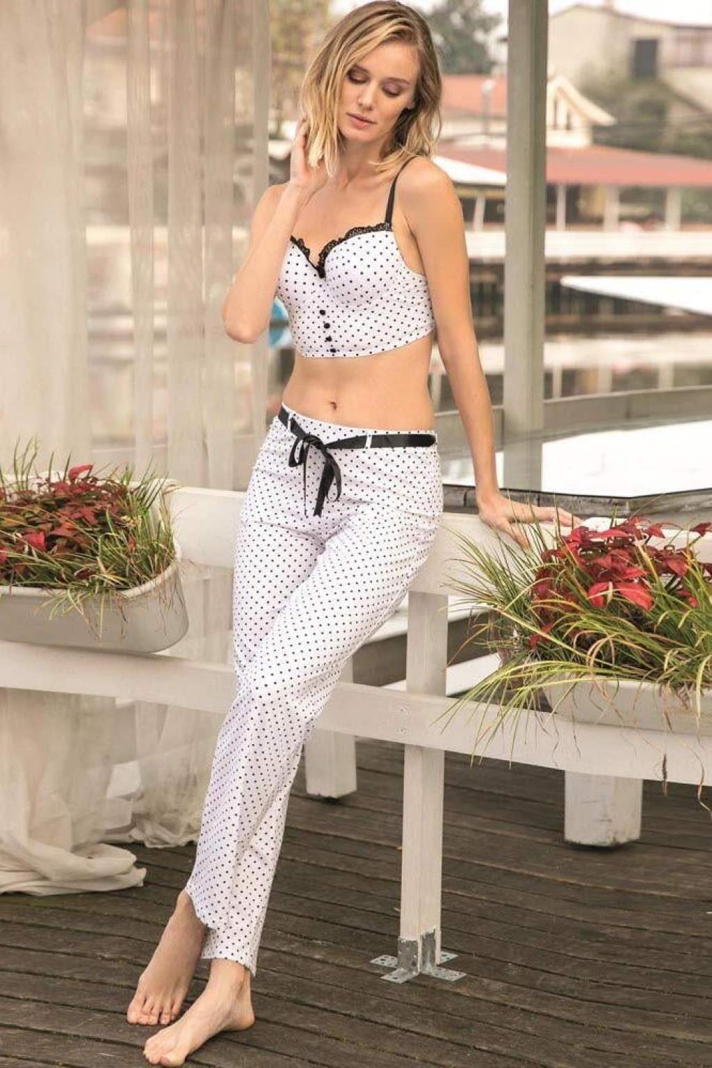 Fantezi Bralet Sütyen Pamuklu Puantiye Desenli Desteksiz Dantel Detaylı Pijama Takımı