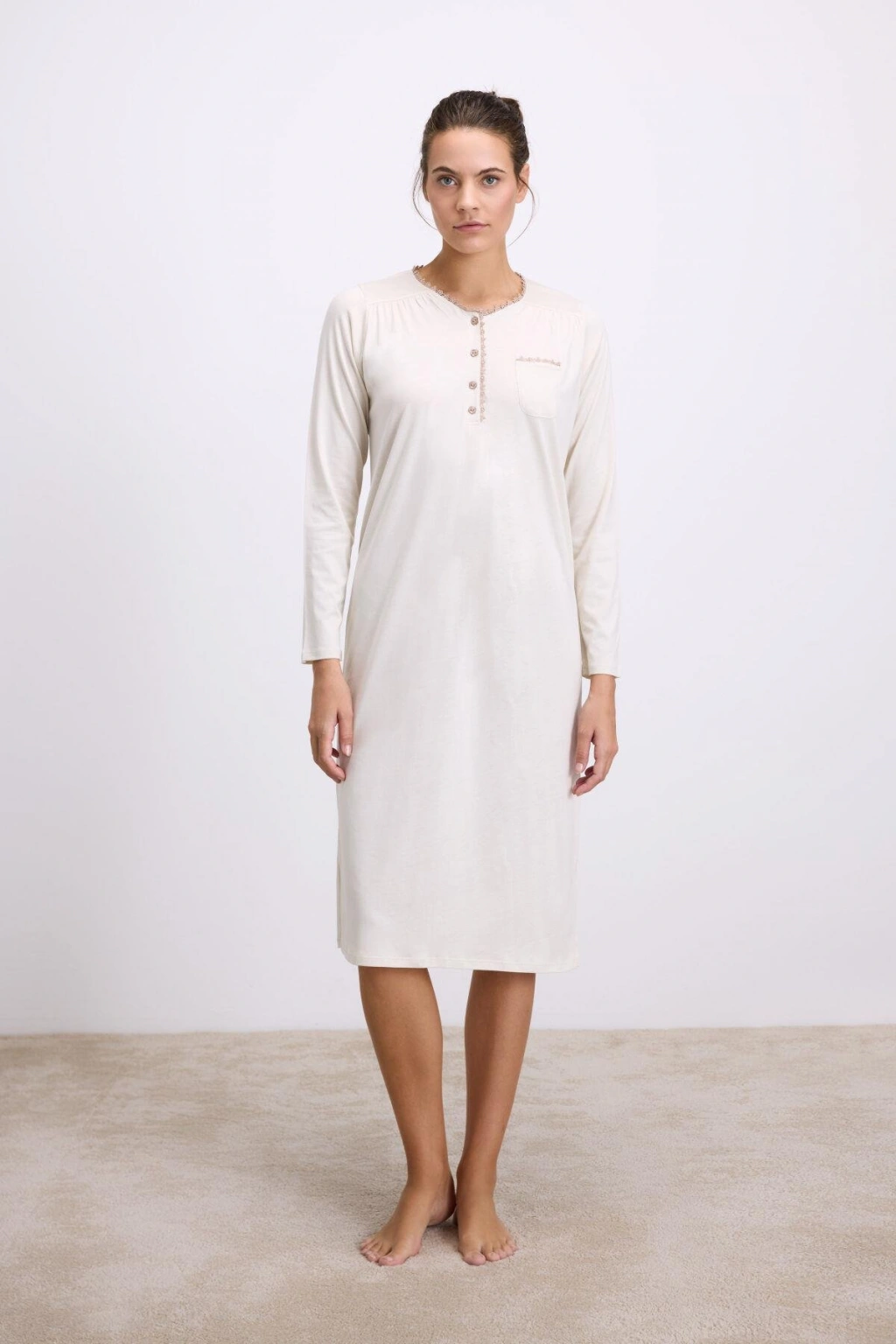 MARSiLYAN- Modal Uzun Kollu Düğmeli Gecelik