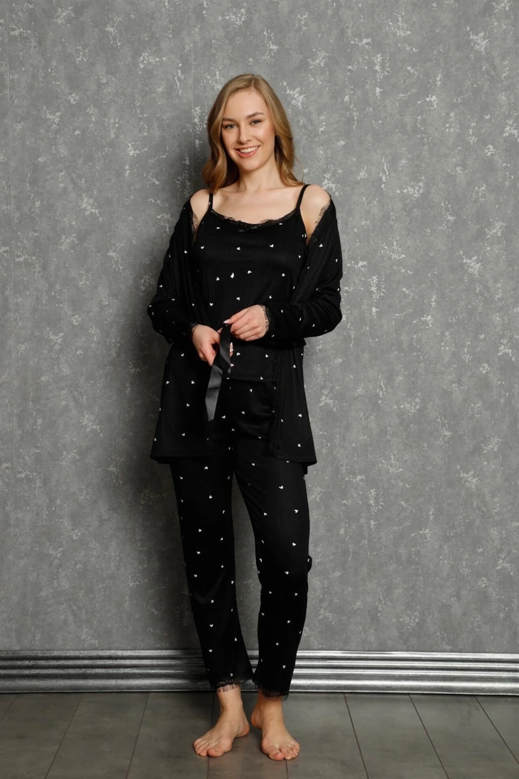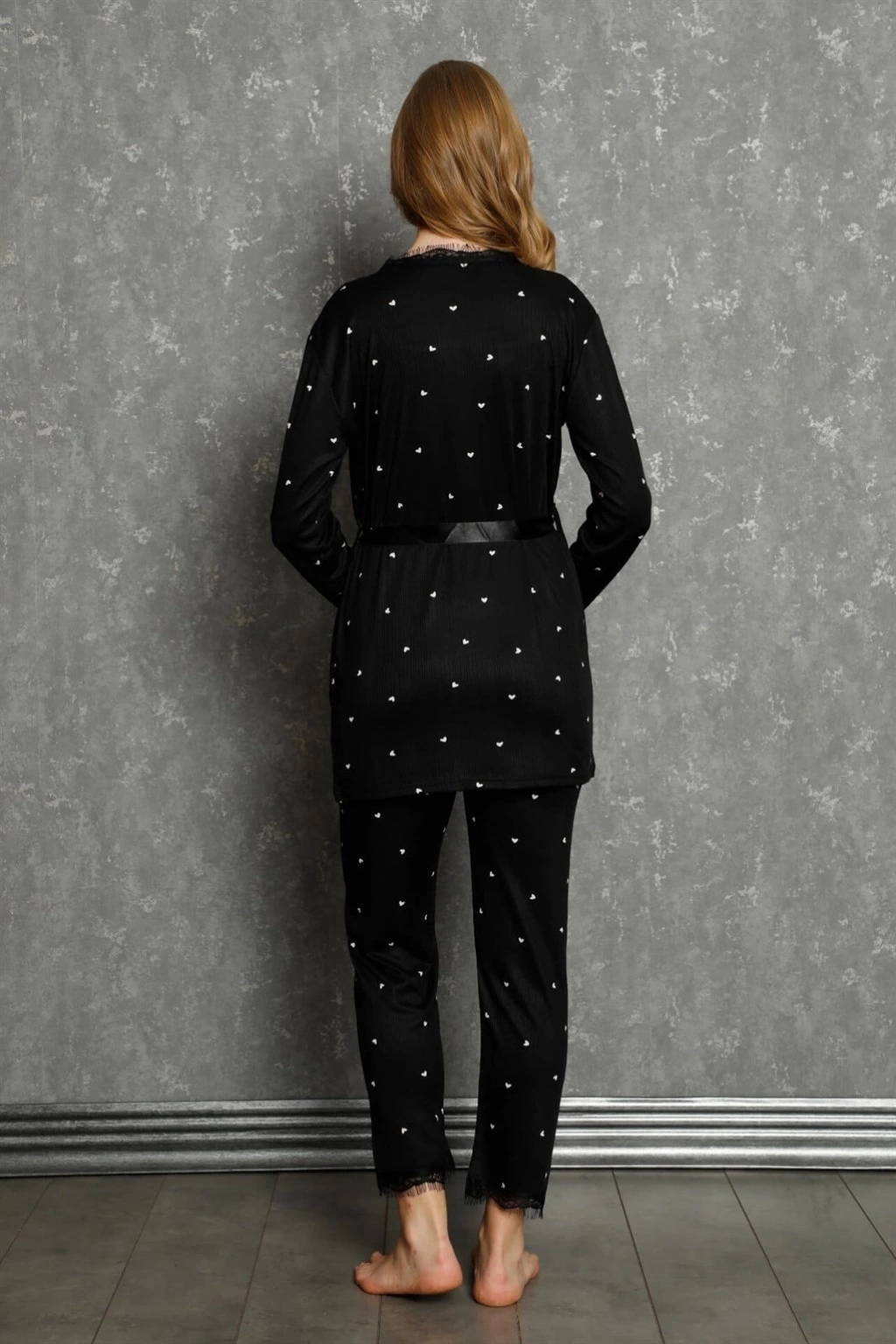 Kadın 3'lü Sabahlık Pijama Takımı Siyah, hem şıklığı hem de rahatlığı ön planda tutan kadınların tercihi oluyor. Gecelerinizde kendinizi özel hissetmenizi sağlayacak bu ürün, şimdi online alışverişte sizleri bekliyor.
