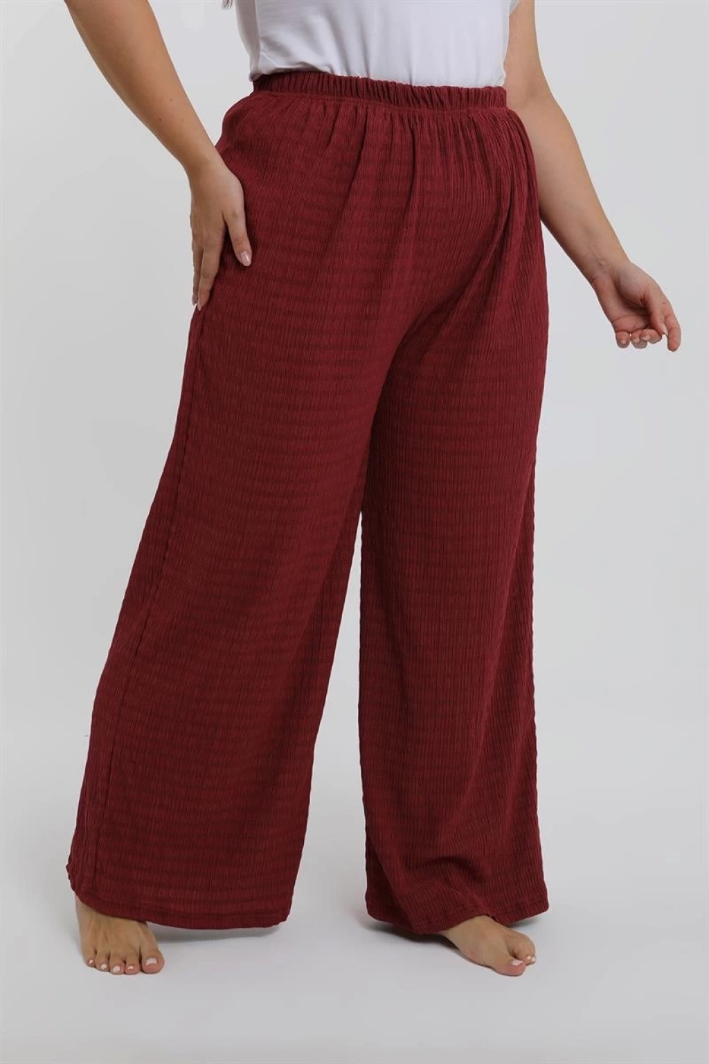 Çamaşır Kenti'nin kadınlar için özel olarak tasarladığı Buğu Beden Bordo Rahat Kesim Baggy Tek Alt, şıklığı ve rahatlığı bir arada sunar.