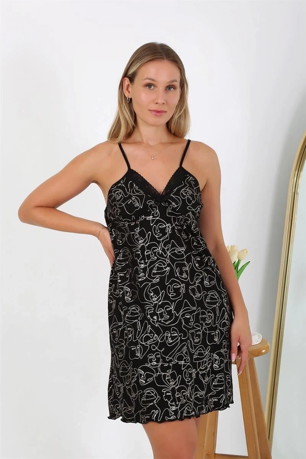 Kadın Pamuklu İp Askılı Büyük Beden Gecelik