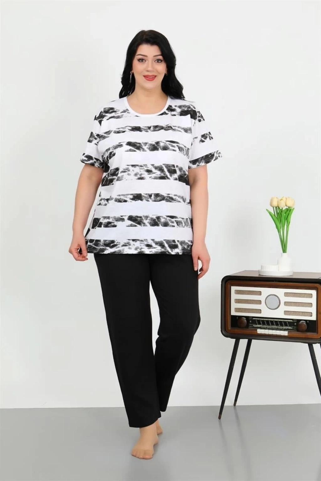 Çamaşır Kenti Kadın Büyük Beden Kısa Kol Penye Pijama Takımı Beyaz, tarzınızdan ödün vermeden konforlu bir gece geçirmenizi sağlar.