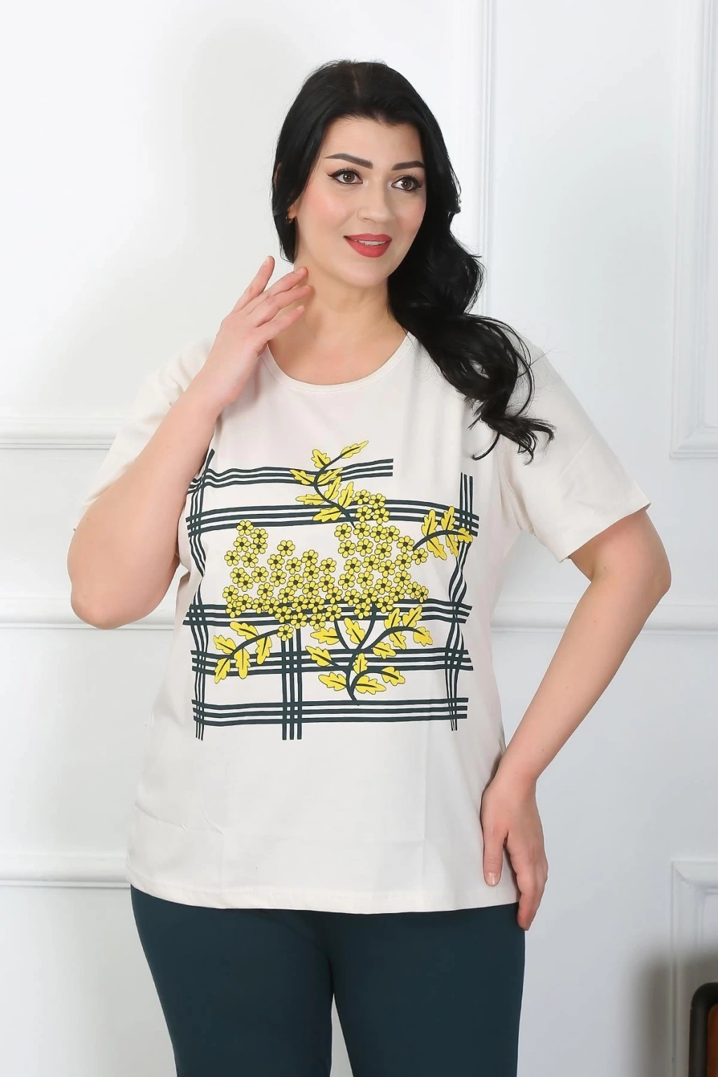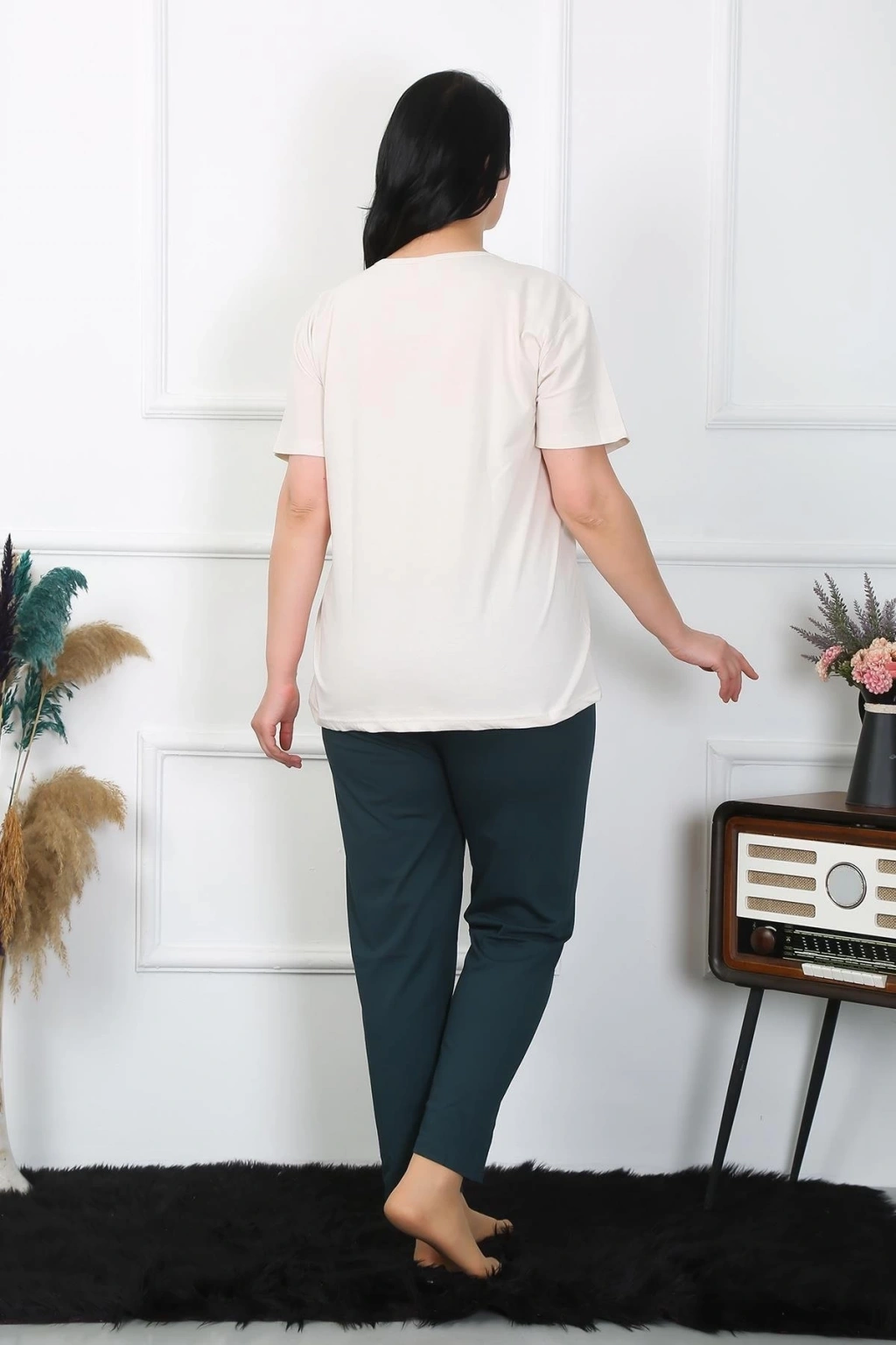 Çamaşır Kenti tarafından özel olarak tasarlanmış olan Kadın Büyük Beden Krem Pijama Takımı, konfor ve şıklığı bir arada sunmaktadır.
