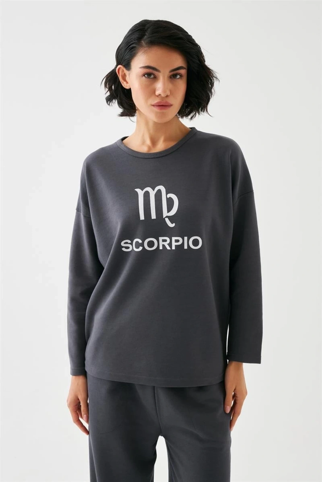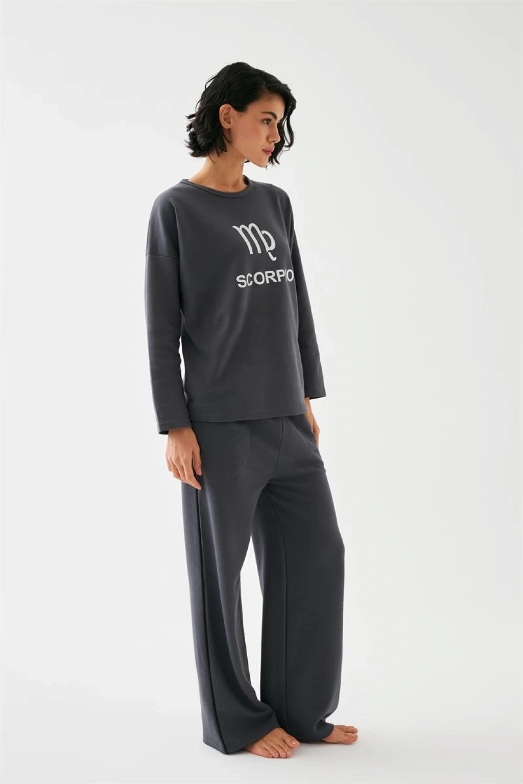Çamaşır Kenti markasının özel tasarımı olan Kadın Füme Akrep Burcu Oversize 2 İplik Eşofman Ev Giyim Takımı, şıklığı ve rahatlığı bir arada sunuyor.