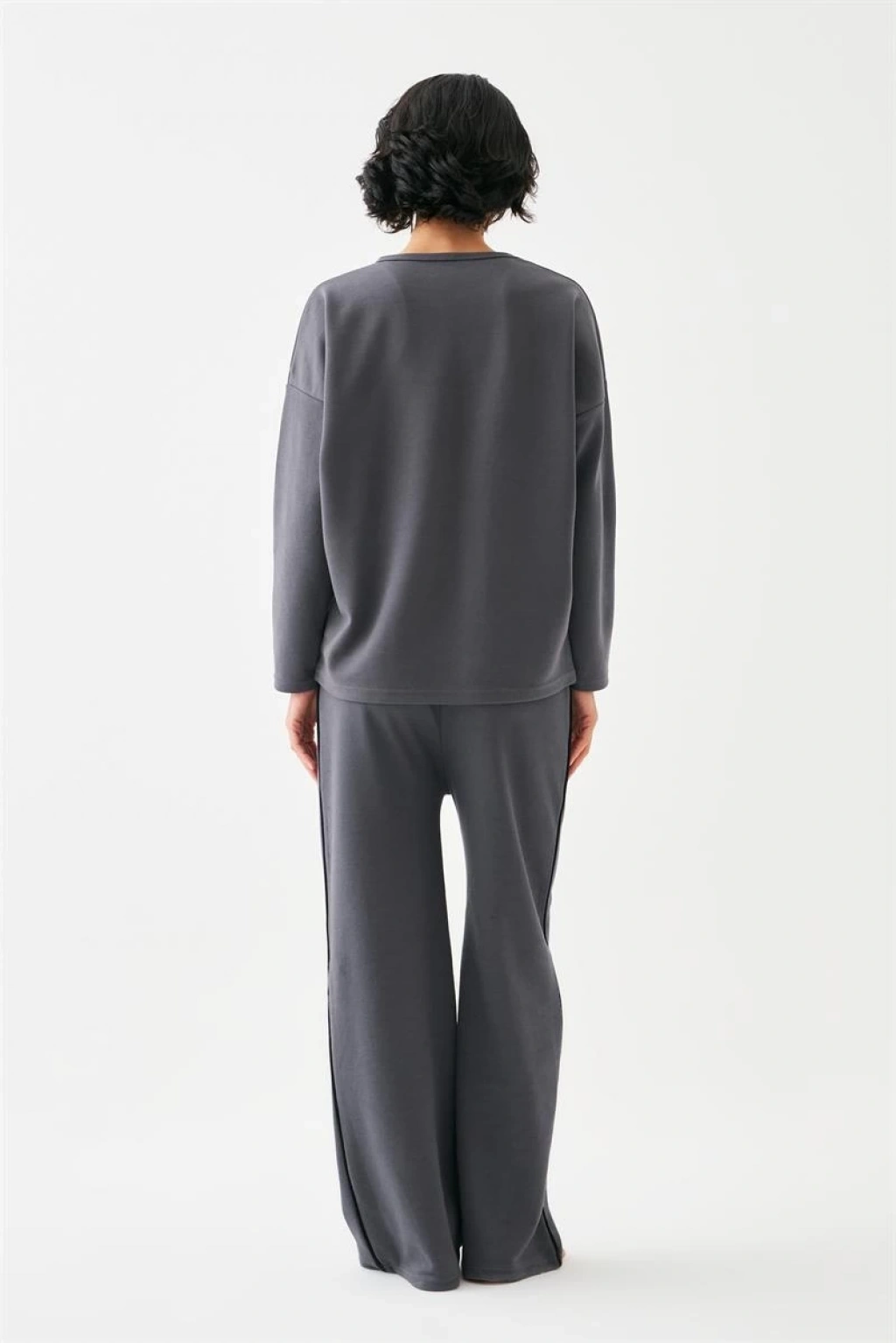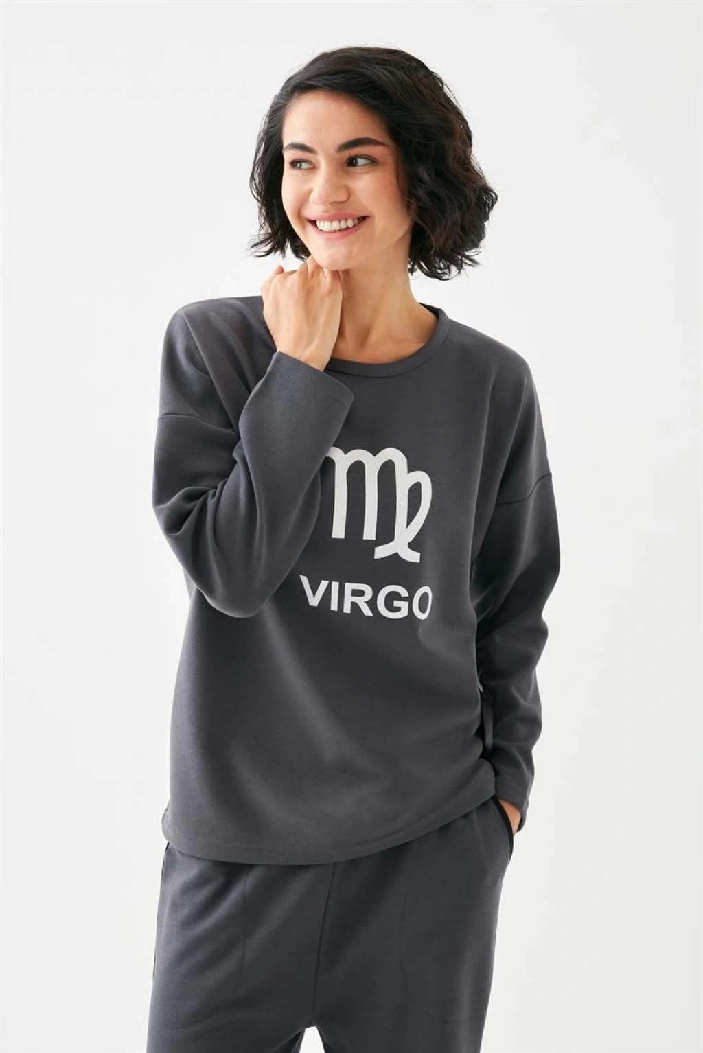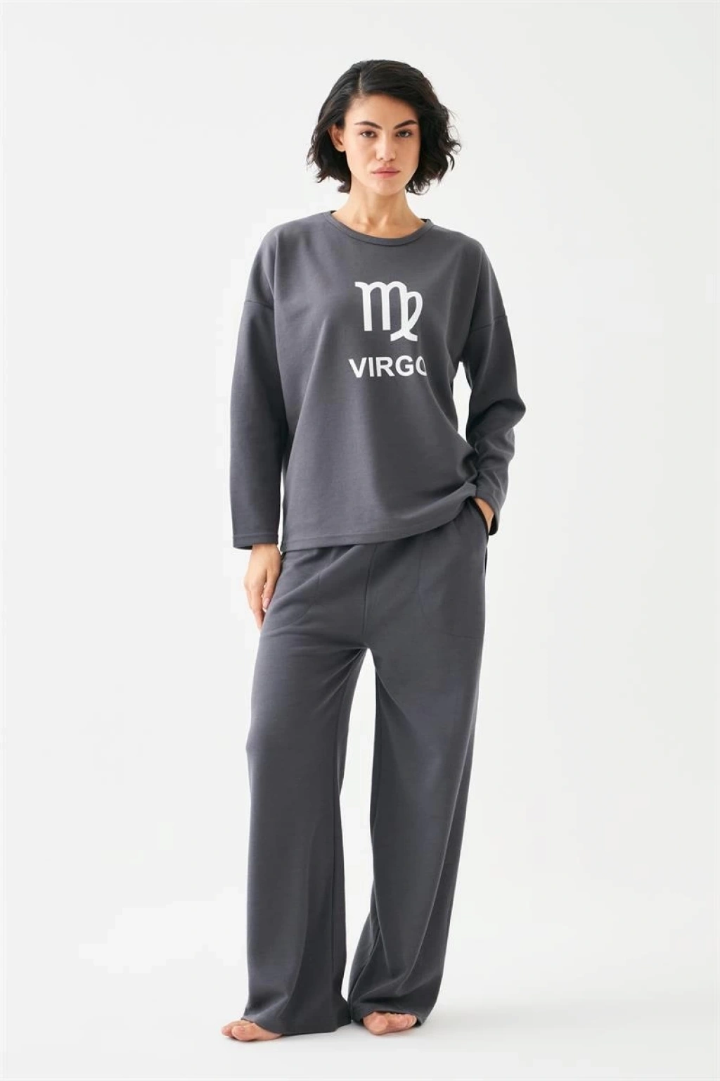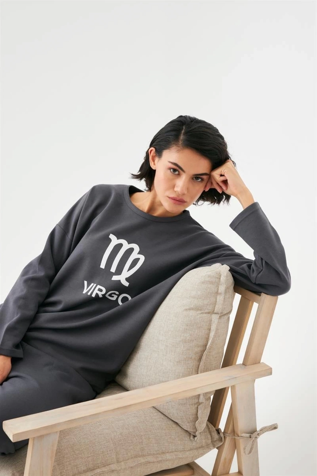 Çamaşır Kenti'nin tasarladığı Kadın Füme Başak Burcu Oversize 2 İplik Eşofman Ev Giyim Takımı, rahatlığı ve şıklığı bir arada sunuyor. İşte bu takımın özellikleri: