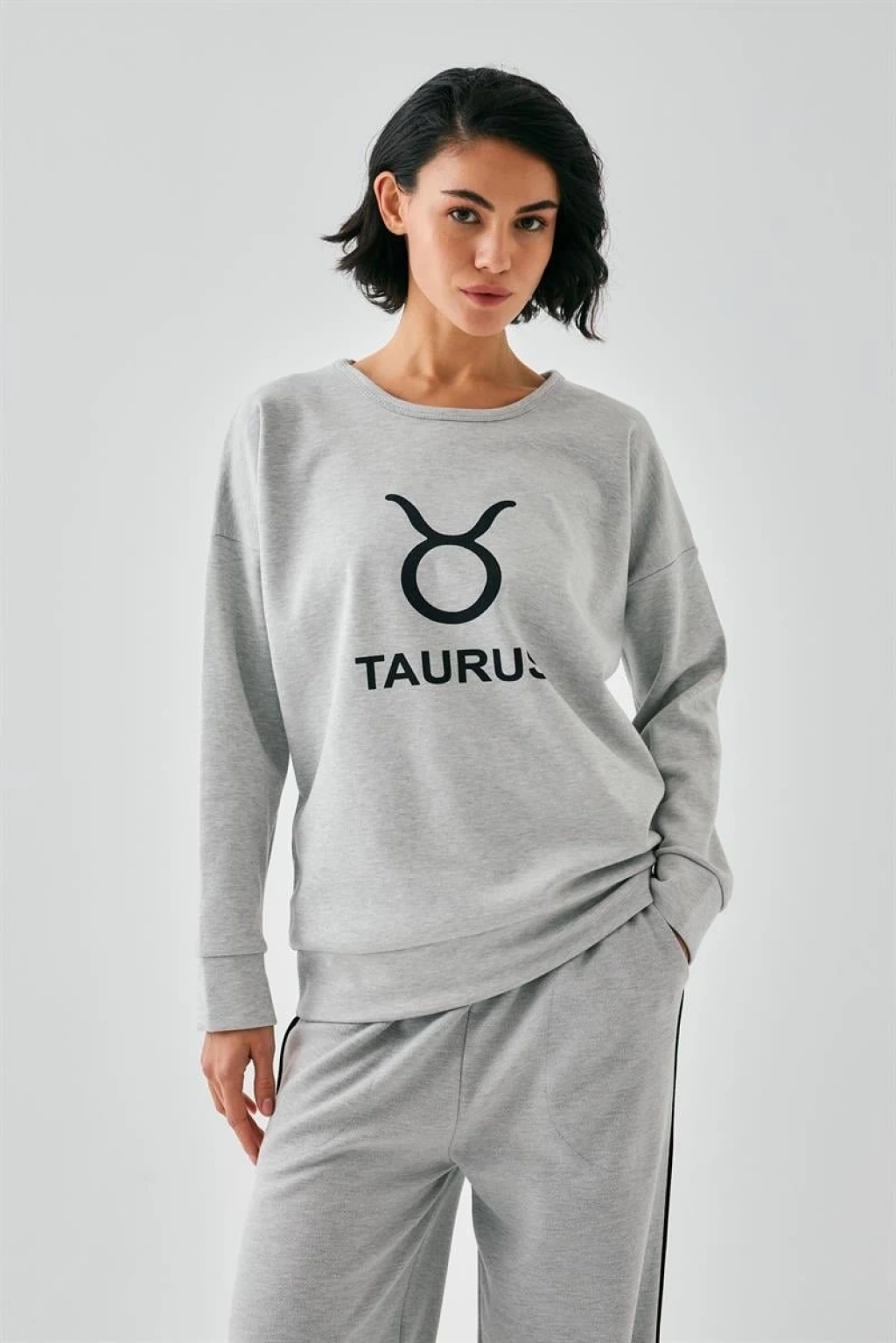 Çamaşır Kenti Kadın Gri Boğa Burcu Oversize 2 İplik Eşofman Ev Giyim Takımı, rahatlığı ve şıklığı bir arada sunuyor.