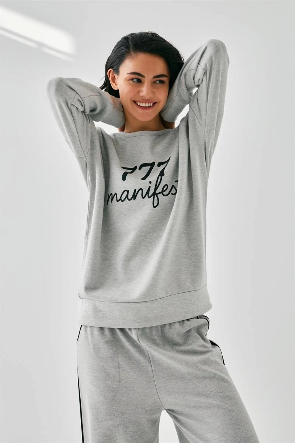 Kadın Gri Manifest Oversize 2 İplik Eşofman Ev Giyim Takımı, Çamaşır Kenti kalitesiyle şıklığı ve rahatlığı bir arada sunuyor.