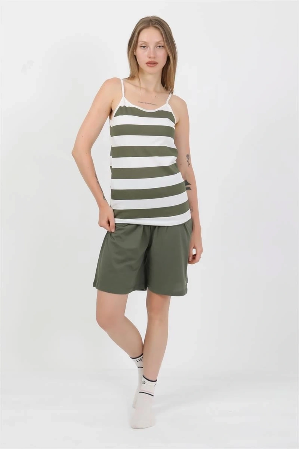 Çamaşır Kenti'nin şık ve rahat tasarımıyla öne çıkan Kadın İp Askılı Pamuk Penye Şortlu Takım Haki, yaz aylarının vazgeçilmez parçası olmaya aday! İnce ip askıları ve hafif dokusuyla maksimum konfor sunan bu takım, sıcak havalarda serinliği garantiler.