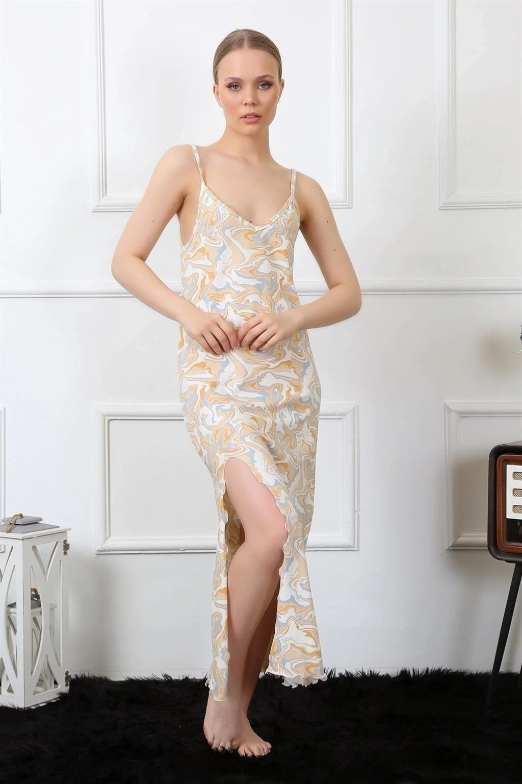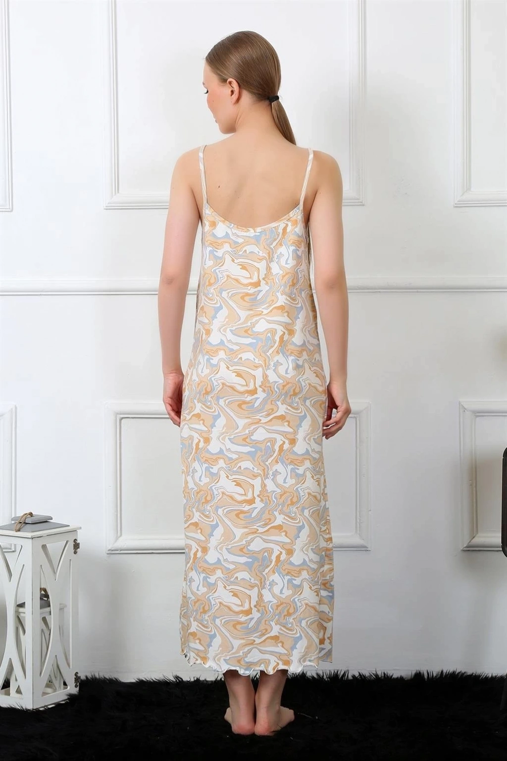 Çamaşır Kenti'nin şıklığı ve rahatlığı bir araya getiren Kadın İp Askılı Uzun Gecelik Krem, gece giyiminde konfor arayan kadınların favorisi olmaya aday. İnce ip askıları ve yumuşak kumaşı sayesinde gece boyunca rahat bir kullanım sunar.