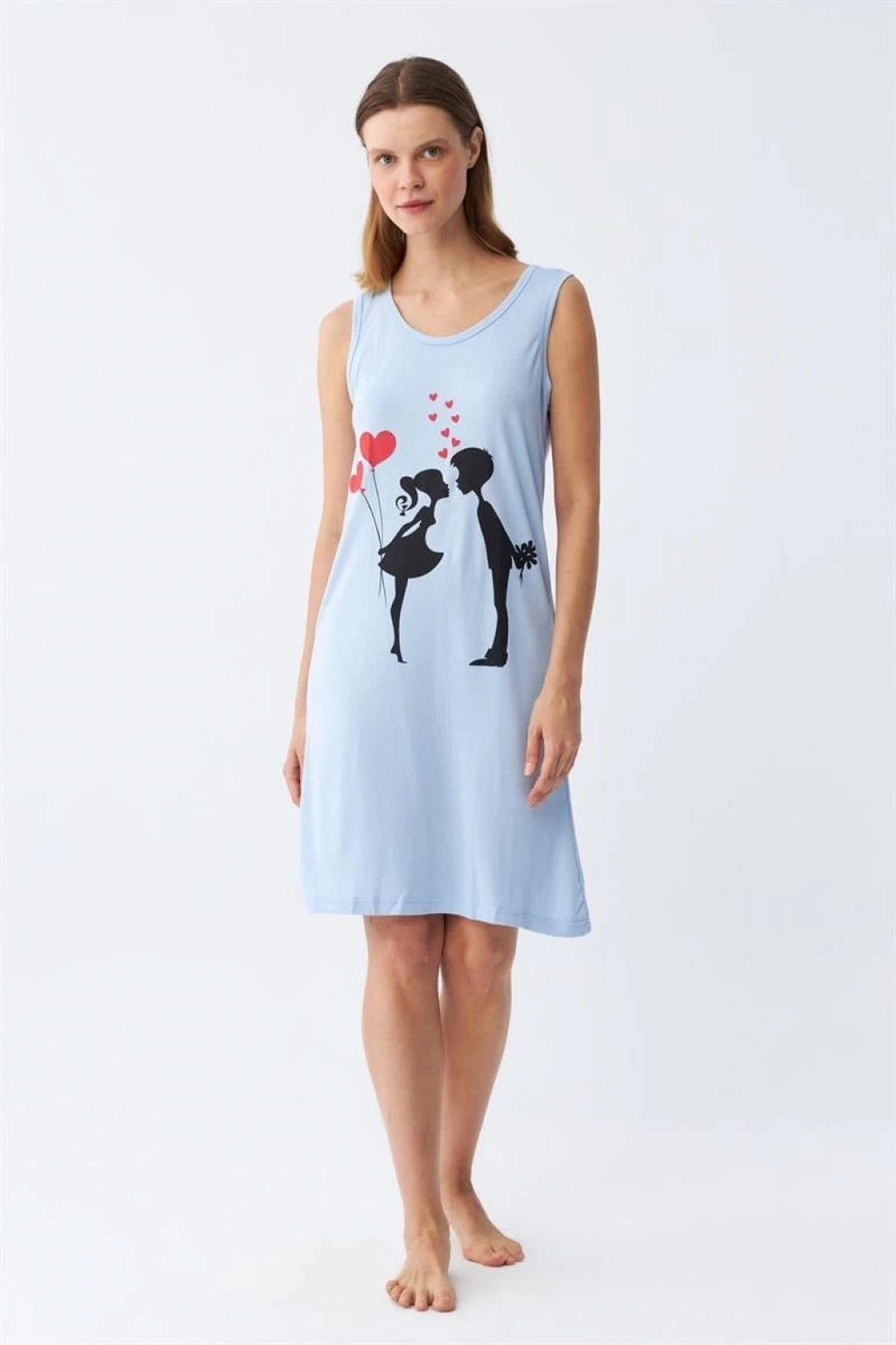 Çamaşır Kenti'nin şıklığı ve konforu bir arada sunan Kadın Kalın Askılı Penye Diz Üstü Mavi Gecelik, rahatınızı ve şıklığınızı ön planda tutar.