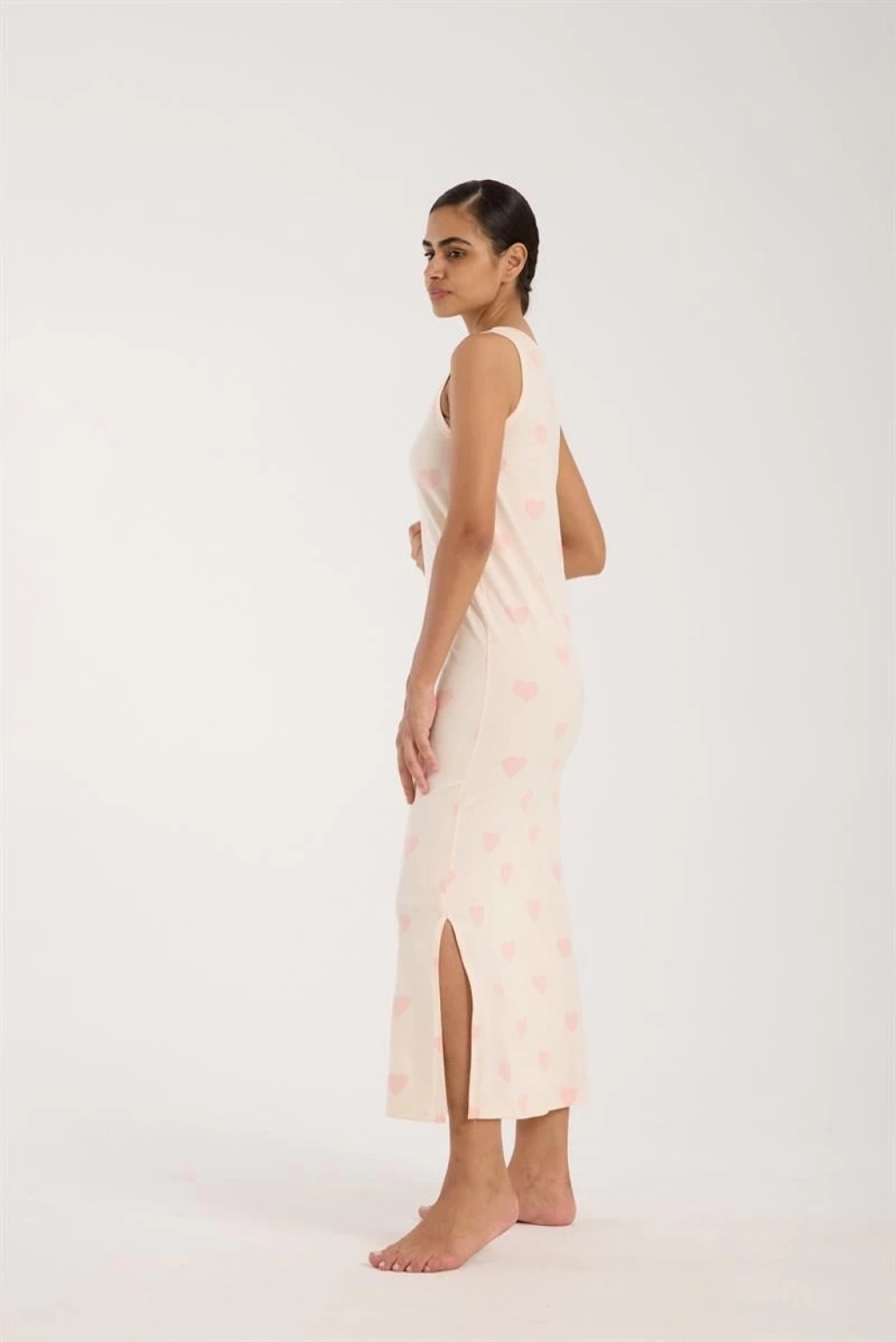 Çamaşır Kenti'nin şık tasarımlı Kadın Kalın Askılı Yırtmaçlı Uzun Pudra Geceliği, konforu ve şıklığı bir arada sunuyor.