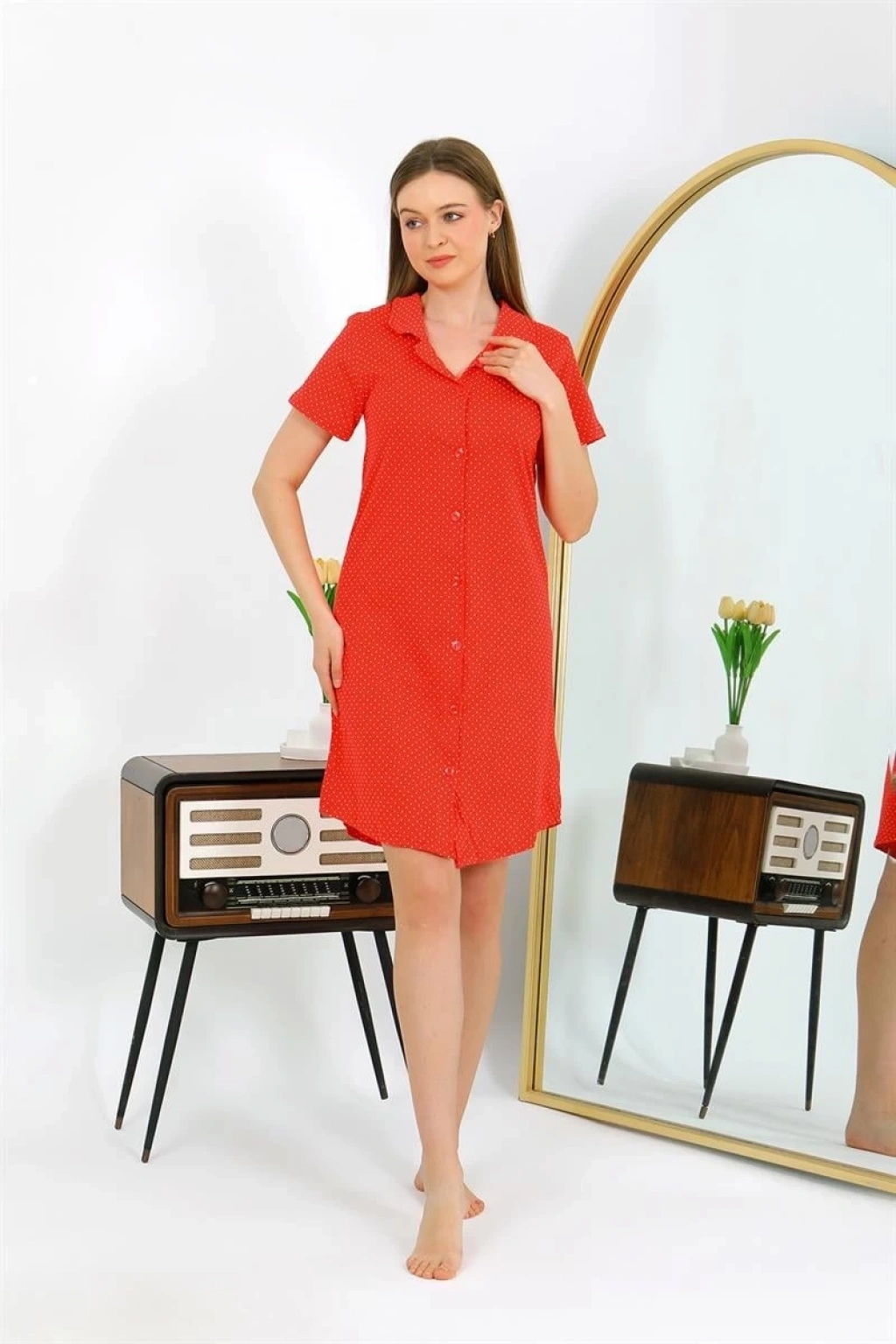 Bu şık Kırmızı Tunik Gecelik, Çamaşır Kenti kalitesiyle artık gardırobunuzdaki vazgeçilmez parçalardan biri olmaya aday! Pamuk penye kumaşıyla hem şıklığı hem de rahatlığı bir arada sunan bu ürün, kısa kollu tasarımı ve düğmeli detaylarıyla dikkat çekiyor. Geceleri rahatça kullanabileceğiniz bu tunik gecelik, sizi hem şık hem de konforlu hissettirecek. Penye gecelik kategorisinde yer alan bu ürünü hemen sepetinize ekleyin ve konforun keyfini yaşayın!