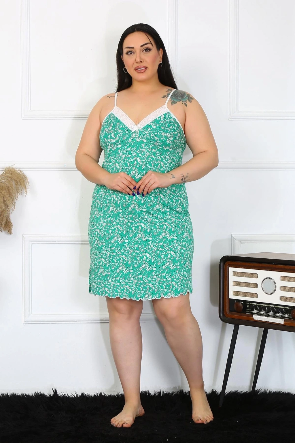 Kadın Pamuklu İp Askılı Büyük Beden Gecelik