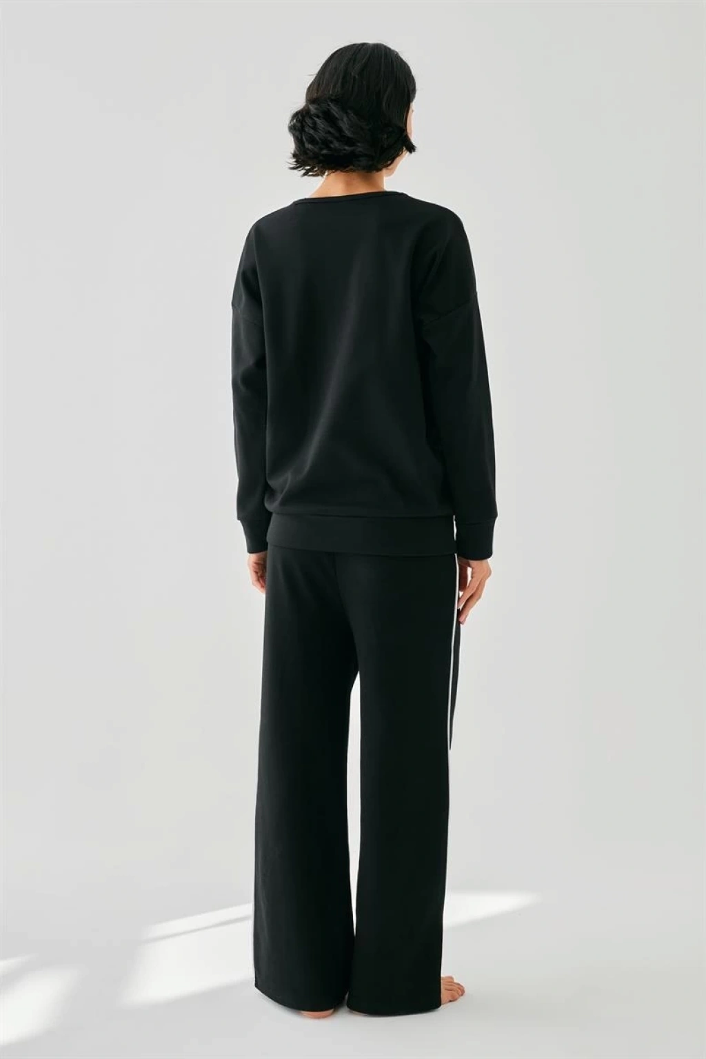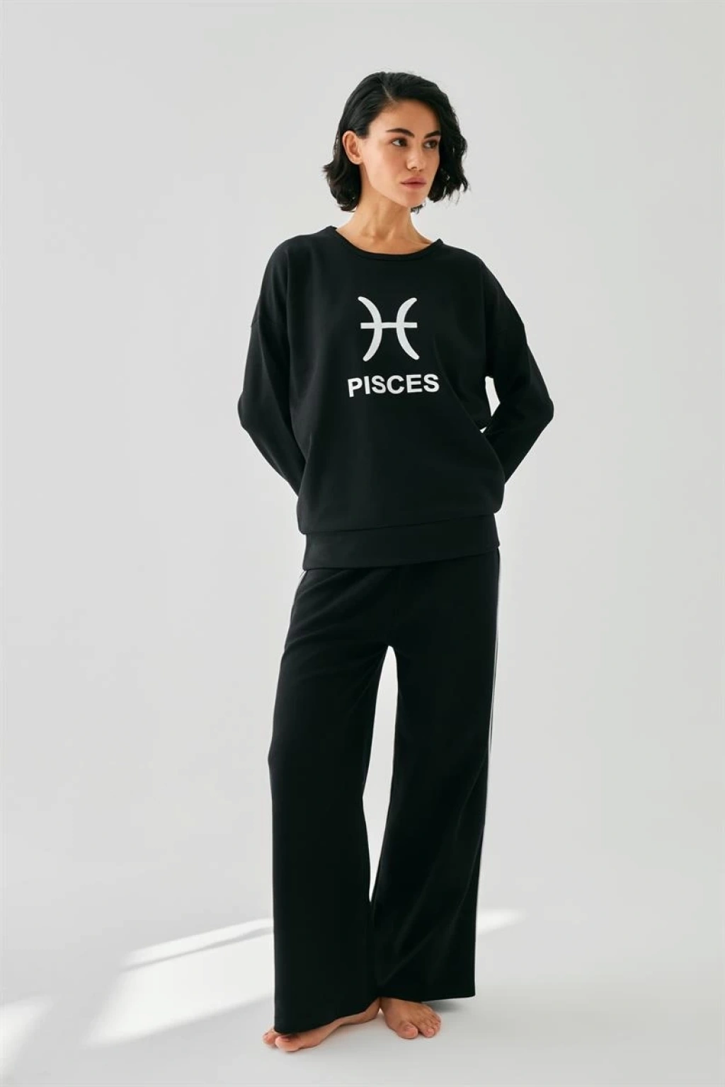 Kadın Siyah Balık Burcu Oversize 2 İplik Eşofman Ev Giyim Takımı