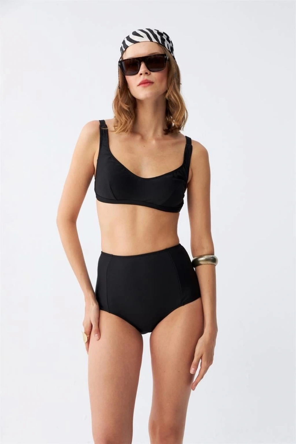 Çamaşır Kenti'nin özel tasarımı olan Kadın Siyah Pedli Kare Yaka Yüksek Bel Bikini Takımı, plajda şıklığı ve konforu bir arada sunar.