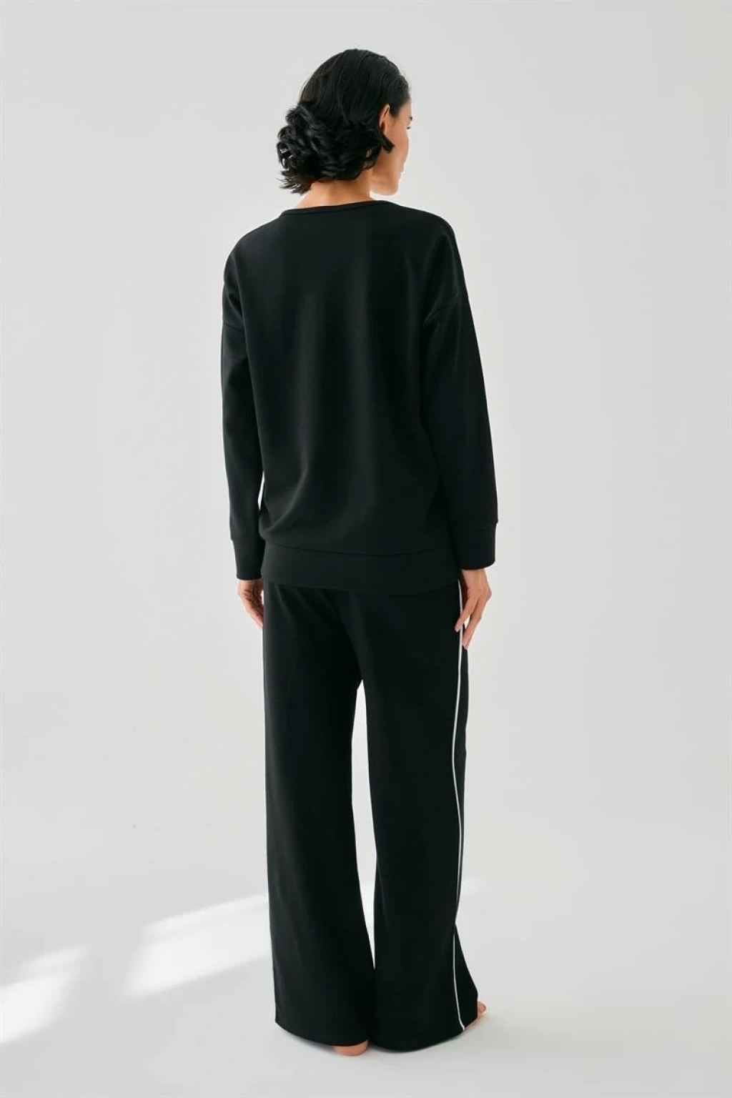 Kadın Siyah Yengeç Burcu Oversize 2 İplik Eşofman Ev Giyim Takımı