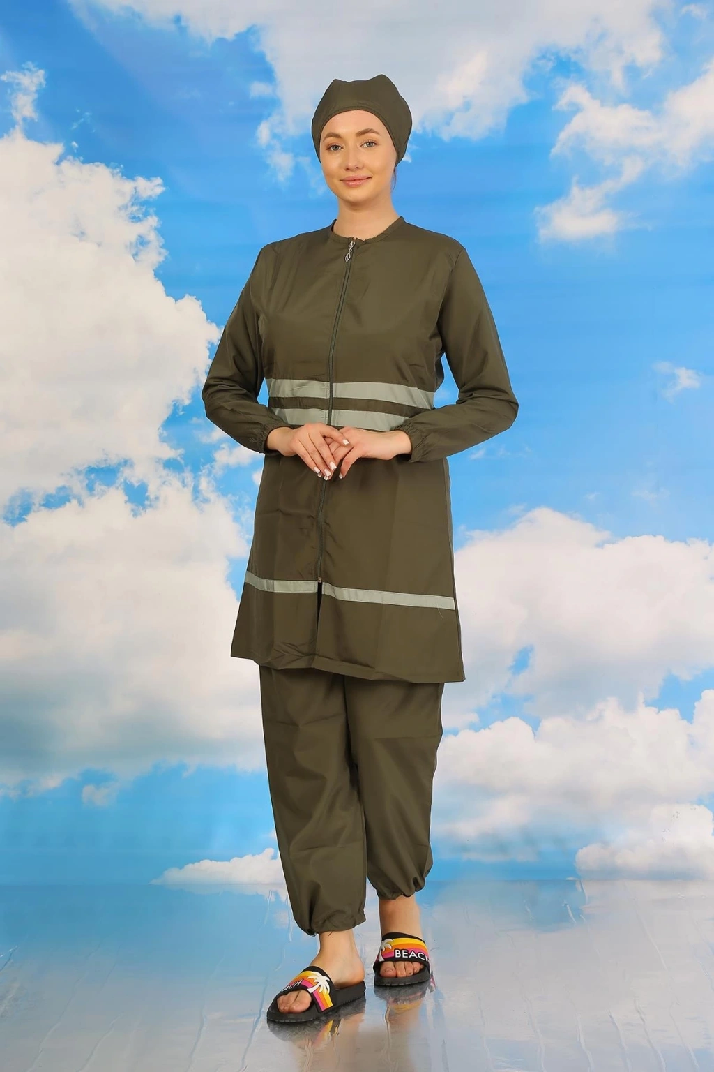Çamaşır Kenti markasının özel tasarımı olan Kadın Tam Tesettür Mayo Haki ile plajda şıklık ve rahatlığı bir arada yaşayacaksınız.