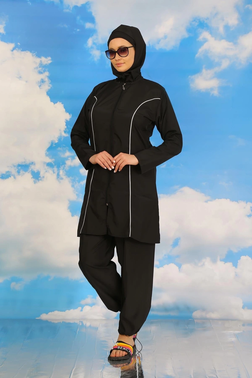 Eğer siz de plajda tesettürlü bir şekilde şıklığı ve rahatlığı bir arada arıyorsanız, Çamaşır Kenti'nin Tam Tesettür Siyah Mayo'sunu tercih edebilirsiniz.