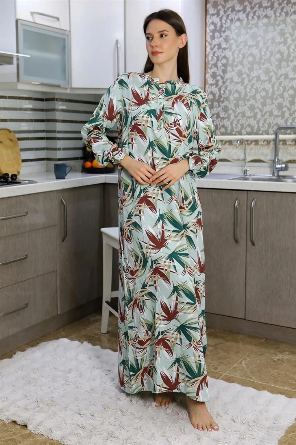 Çamaşır Kenti markasının şıklık ve rahatlığı bir araya getirdiği Kadın Uzun Kol Penye Gecelik Ev Elbisesi Yeşil ile evinizde şıklığı hissedin.