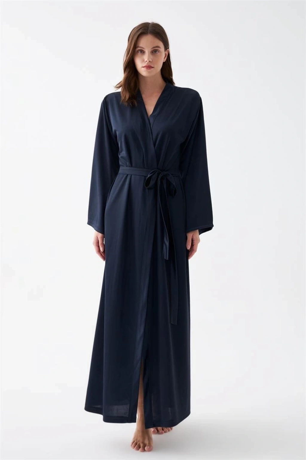 Çamaşır Kenti'nin şıklığı ve konforu bir arada sunan Kadın Uzun Lacivert Saten Sabahlık ile rahatlığın keyfini yaşayacaksınız.