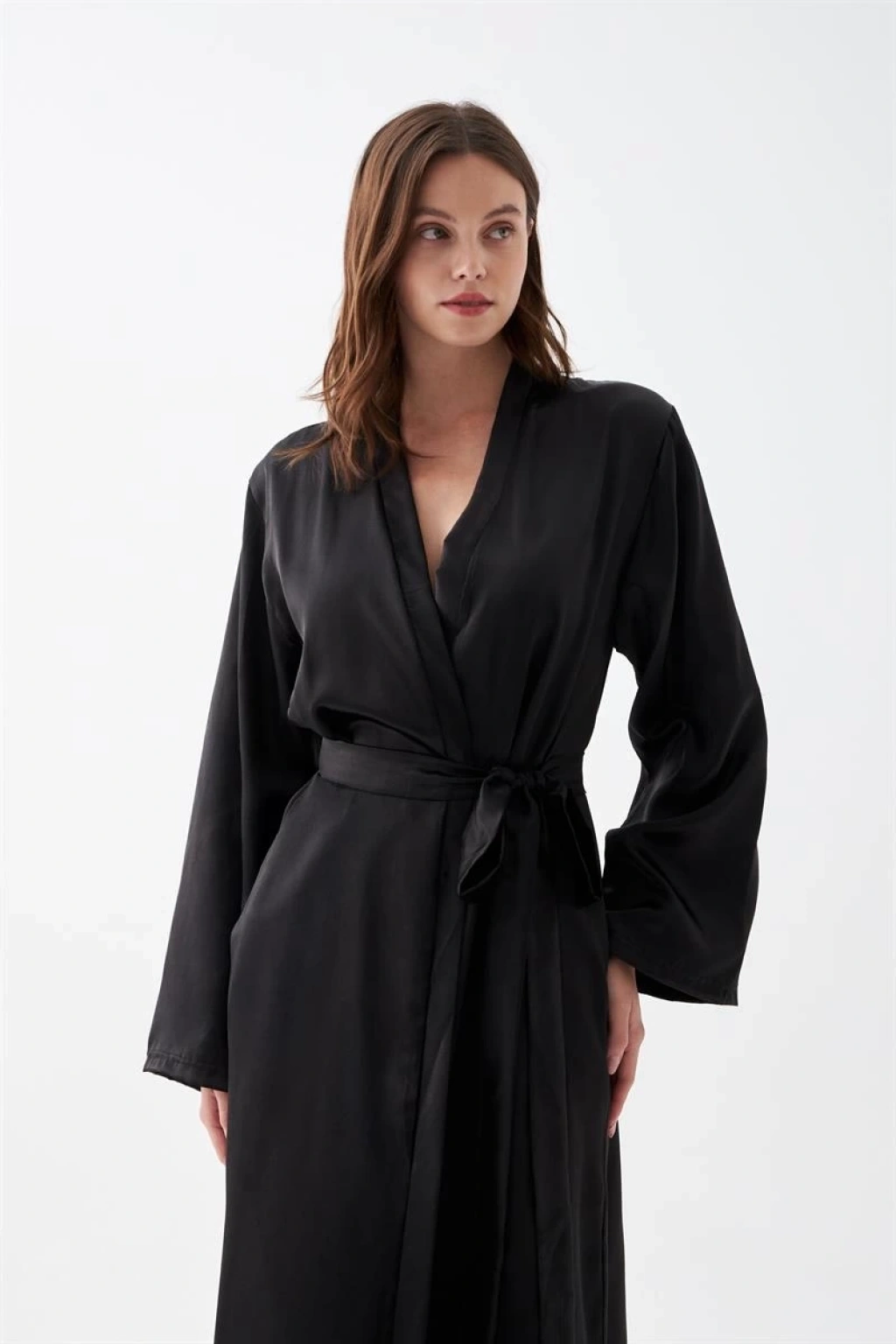 Kadın Uzun Siyah Saten Sabahlık ile her zaman şıklığı ve konforu bir arada hissedin. Sipariş verin, hemen teslim alın!