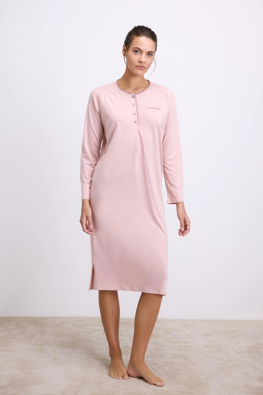 MARSiLYAN- Modal Uzun Kollu Düğmeli Gecelik