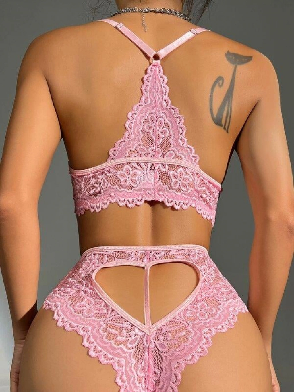 Pembe Dantelli Fantezi Bralet Sütyen Takımı