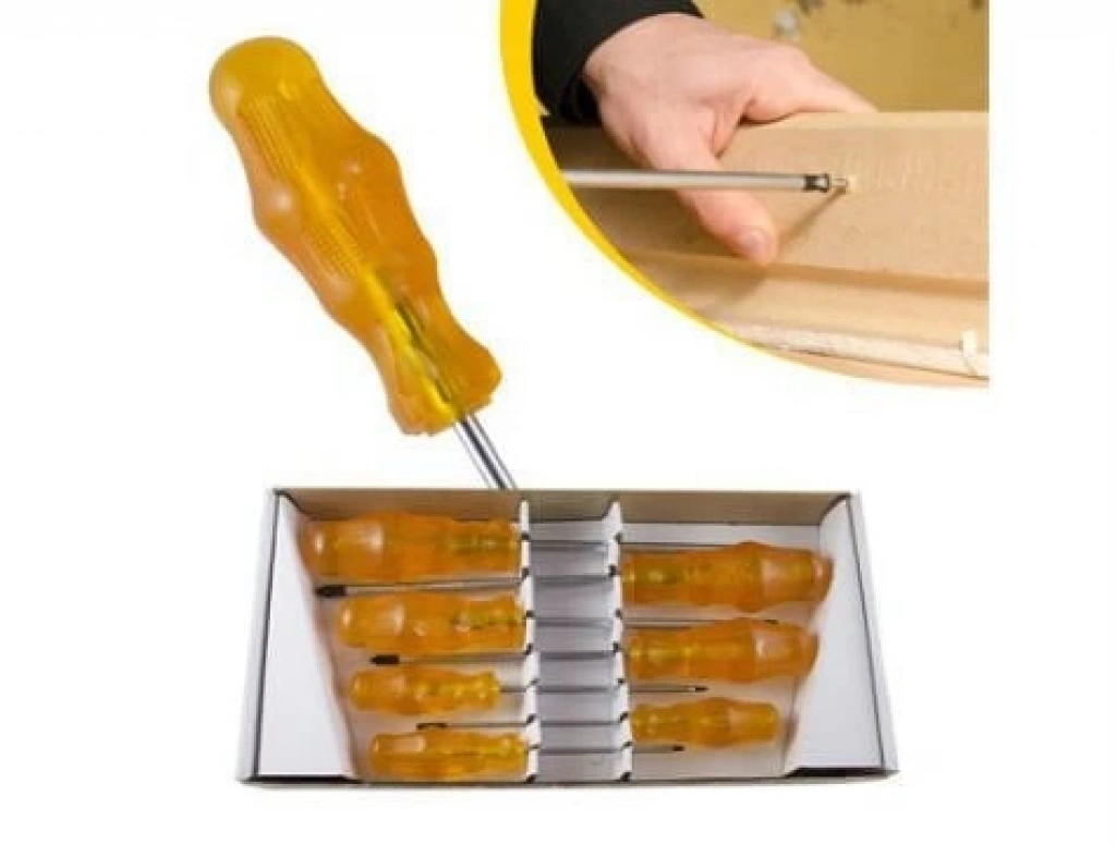 Evinizde, işyerinizde, tamirhanenizde kullanabileceğiniz son derece kullanışlı Mıknatıs Uçlu Tornavida Seti, sapıyla elinize tam olarak oturur ve mıknatıs uçlar sayesinde vidayı düşürmemenizi sağlar. Farklı boyutlarda düz ve yıldız uçlarla sıkamadığınız ya da sökemediğiniz vida kalmasın!