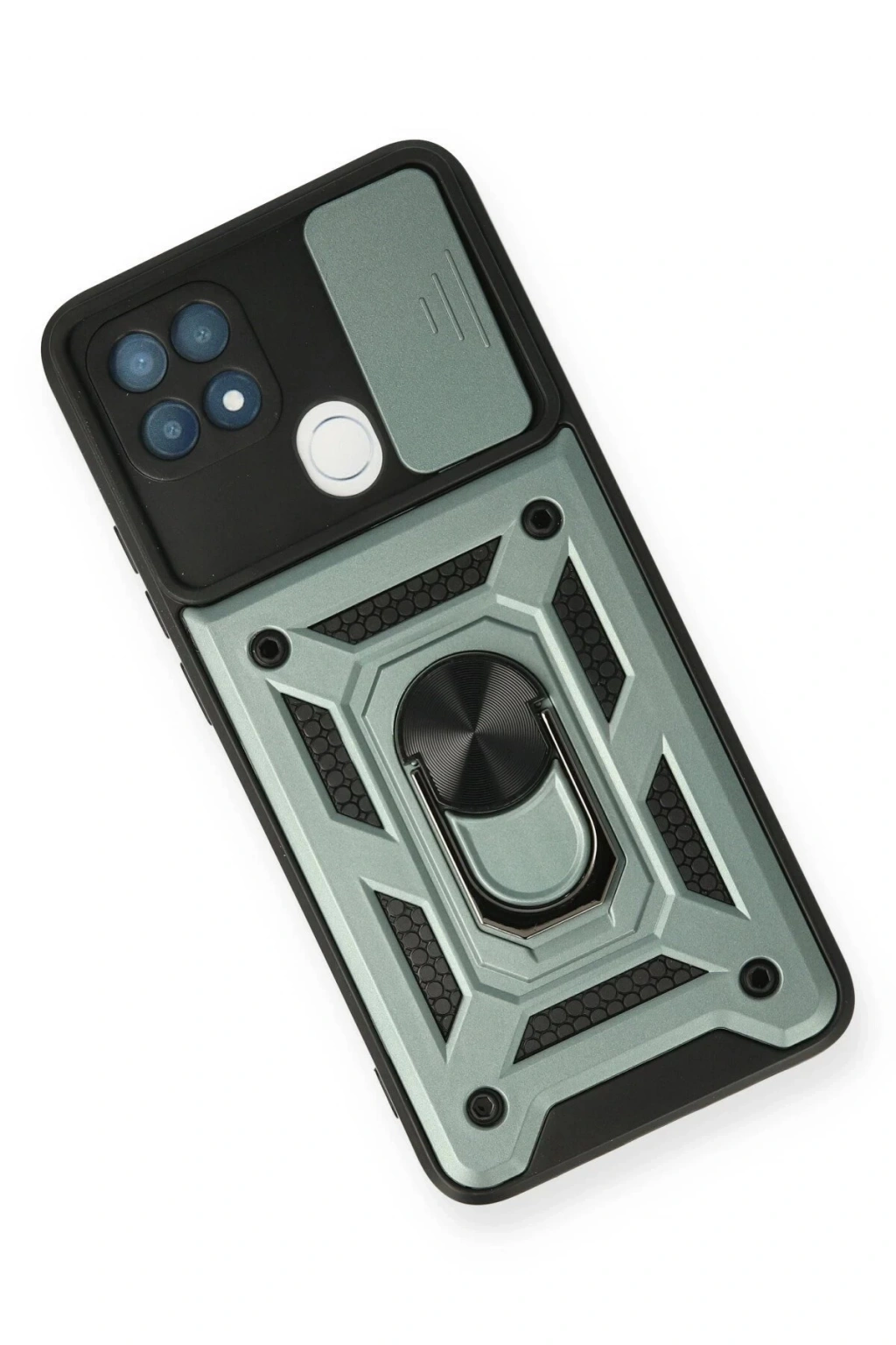 Oppo A15 Kılıf Pars Lens Yüzüklü Silikon - Yeşil